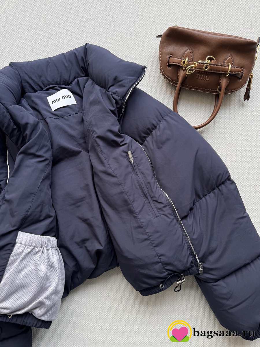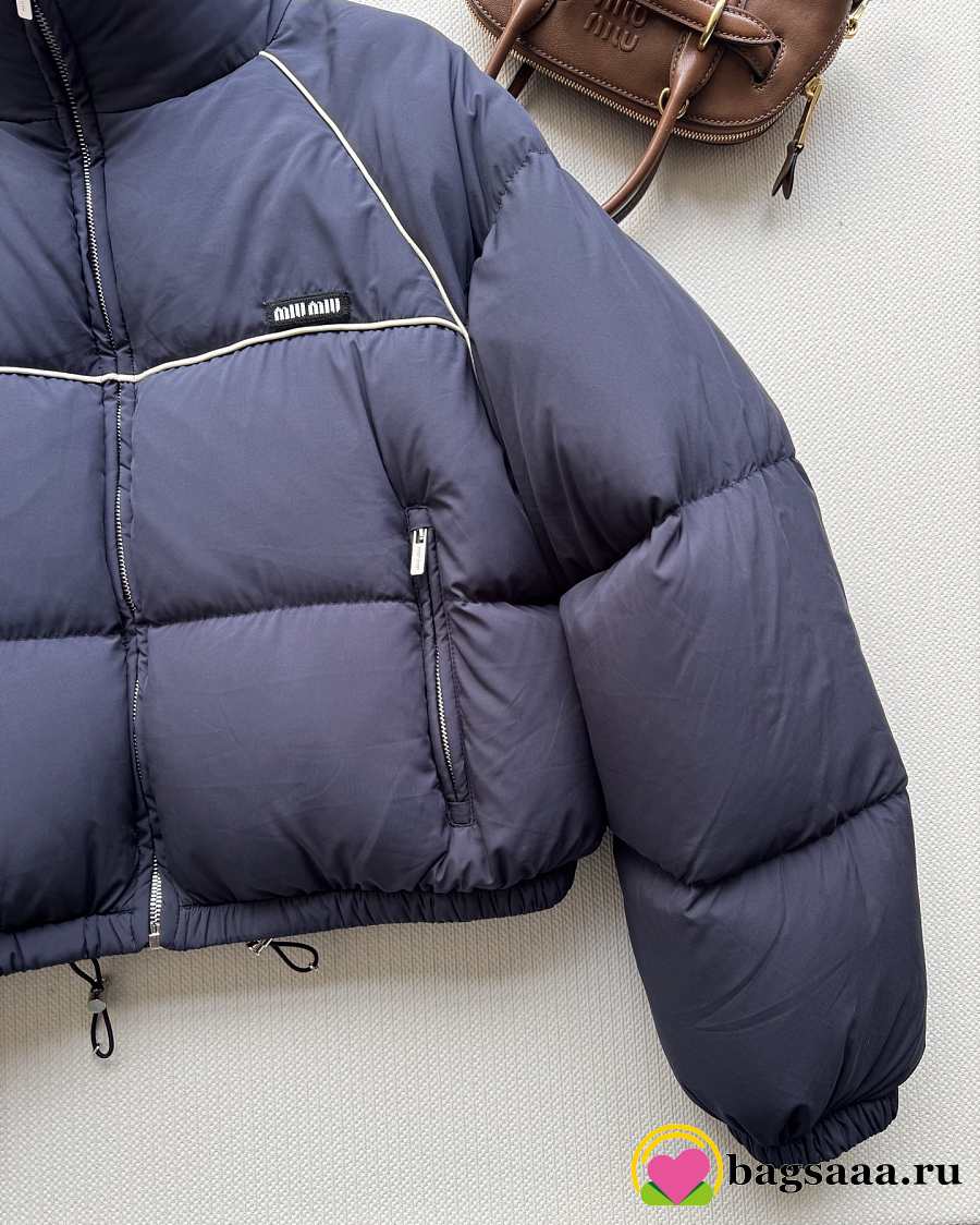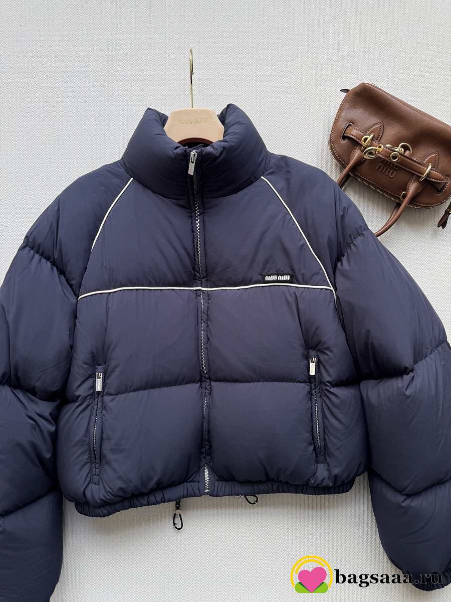 Bagsaaa Miu Miu down jacket with high collar and a cropped length navy blue