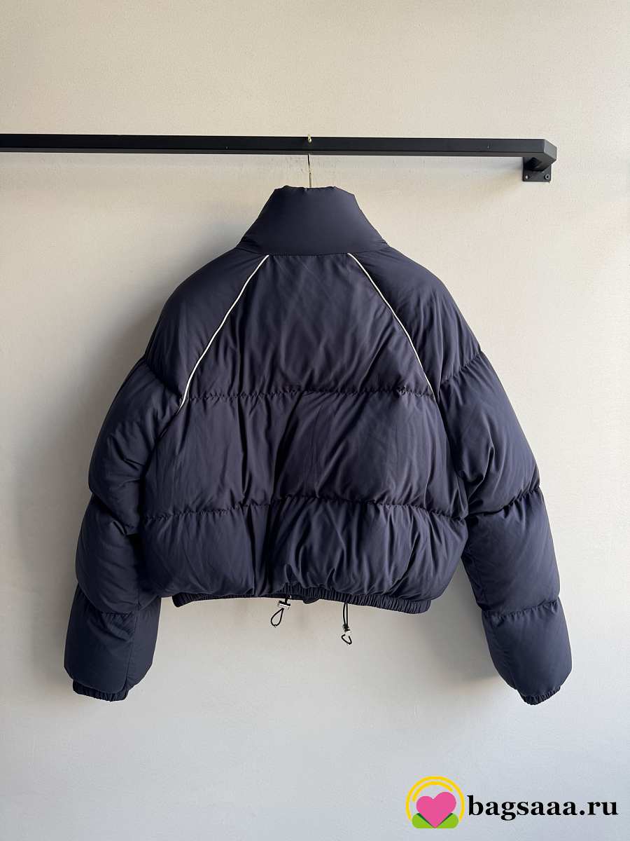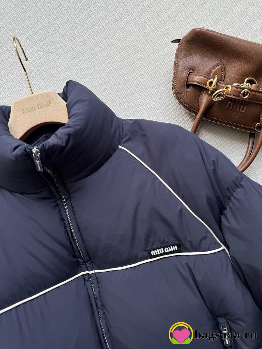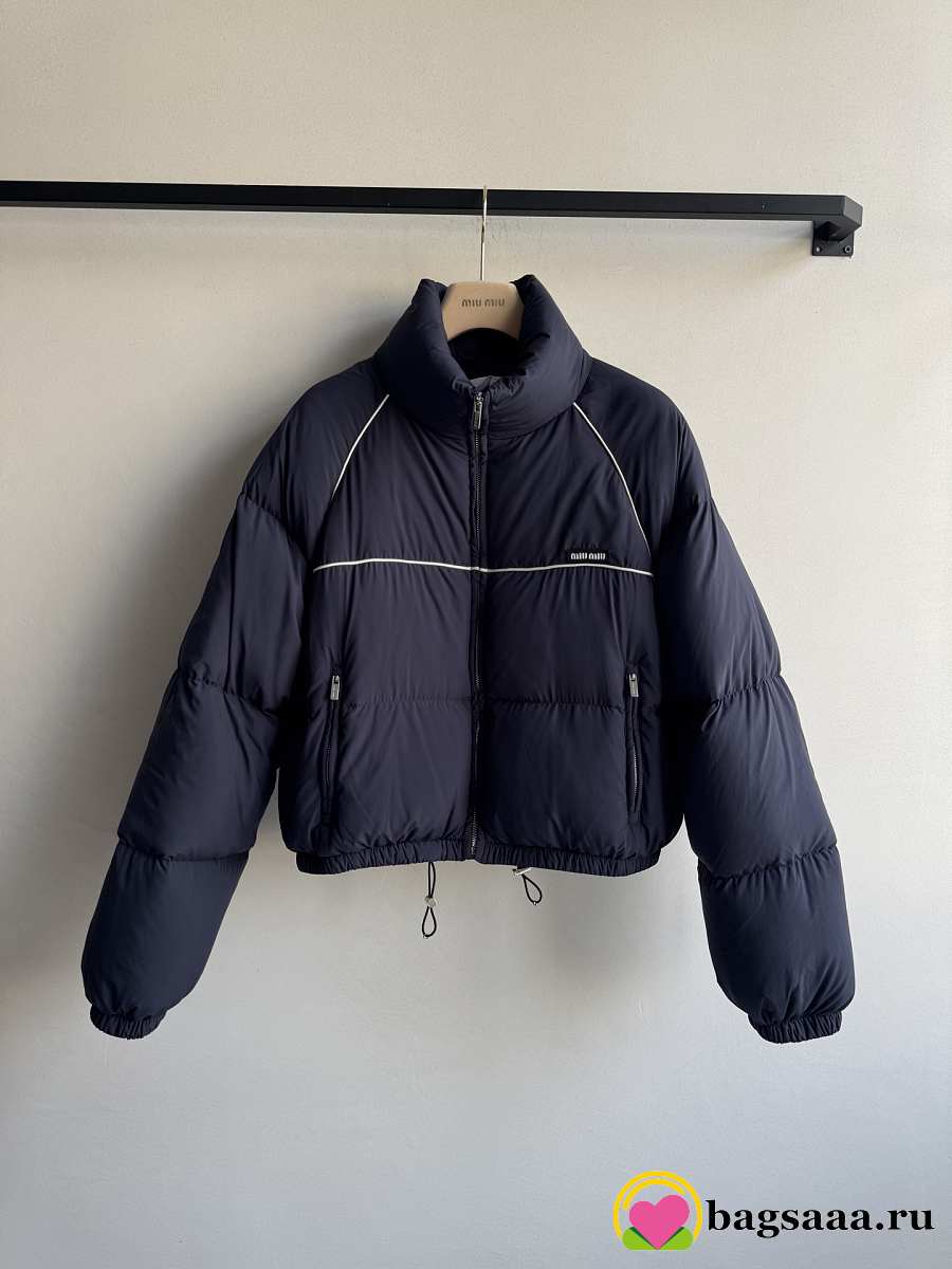 Bagsaaa Miu Miu down jacket with high collar and a cropped length navy blue