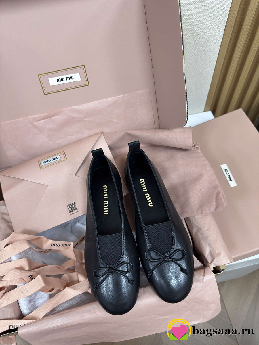 Bagsaaa Miu Miu leather ballerina shoes black