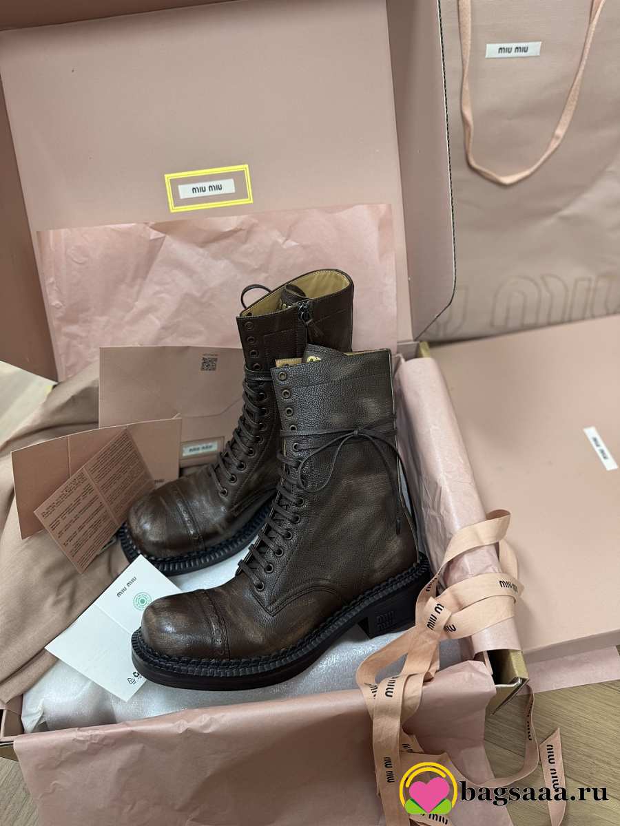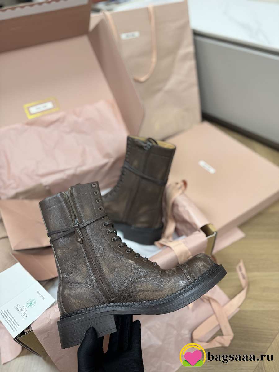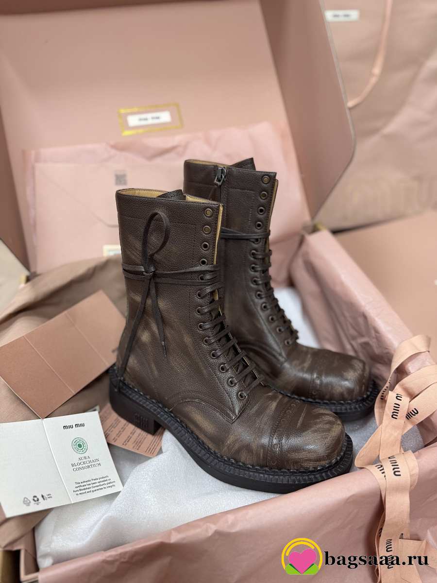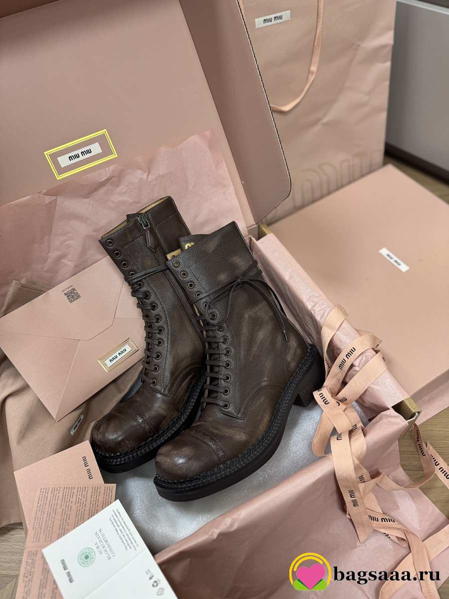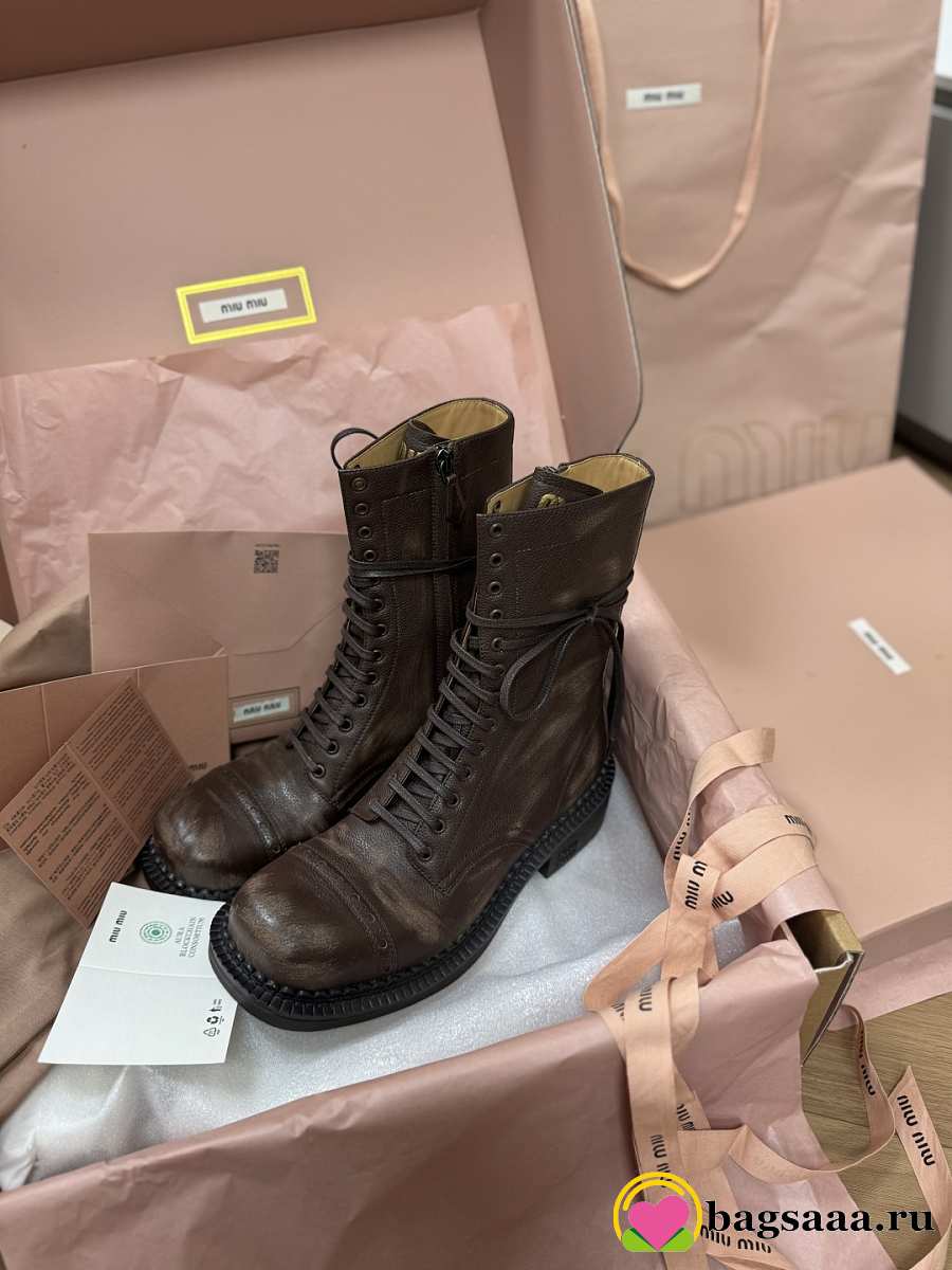 Bagsaaa Miu Miu Leather laced booties Cocoa Brown
