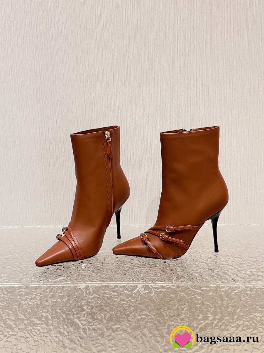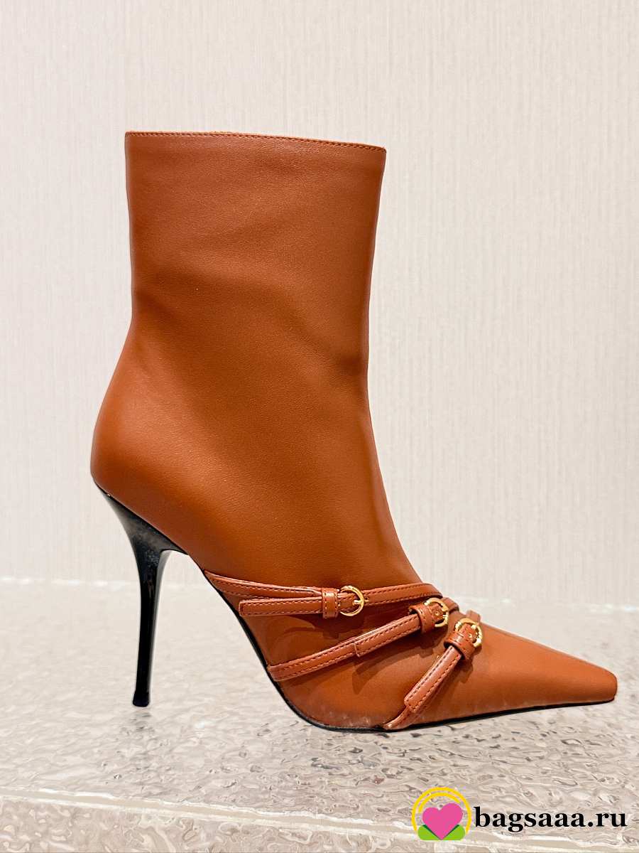 Bagsaaa Miu Miu Nappa leather boots with buckle brown