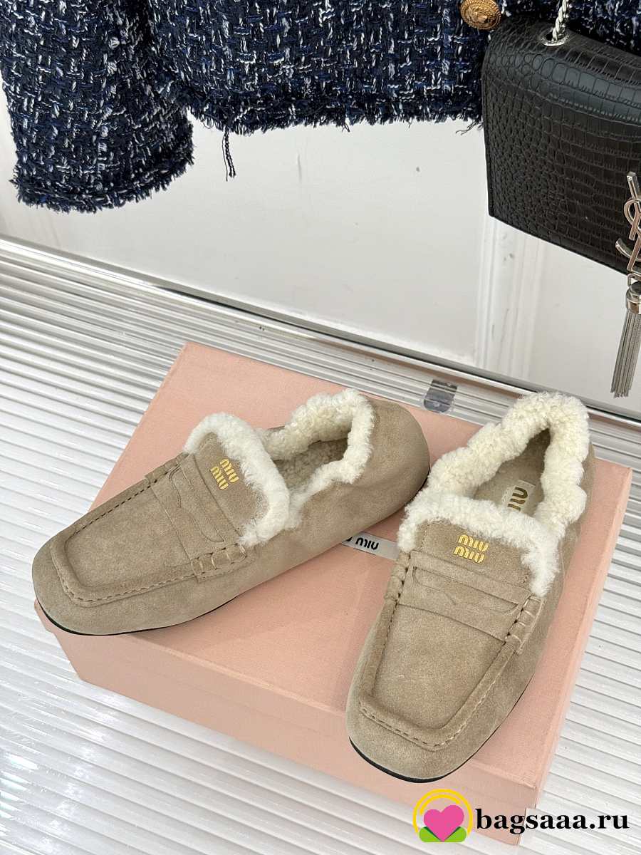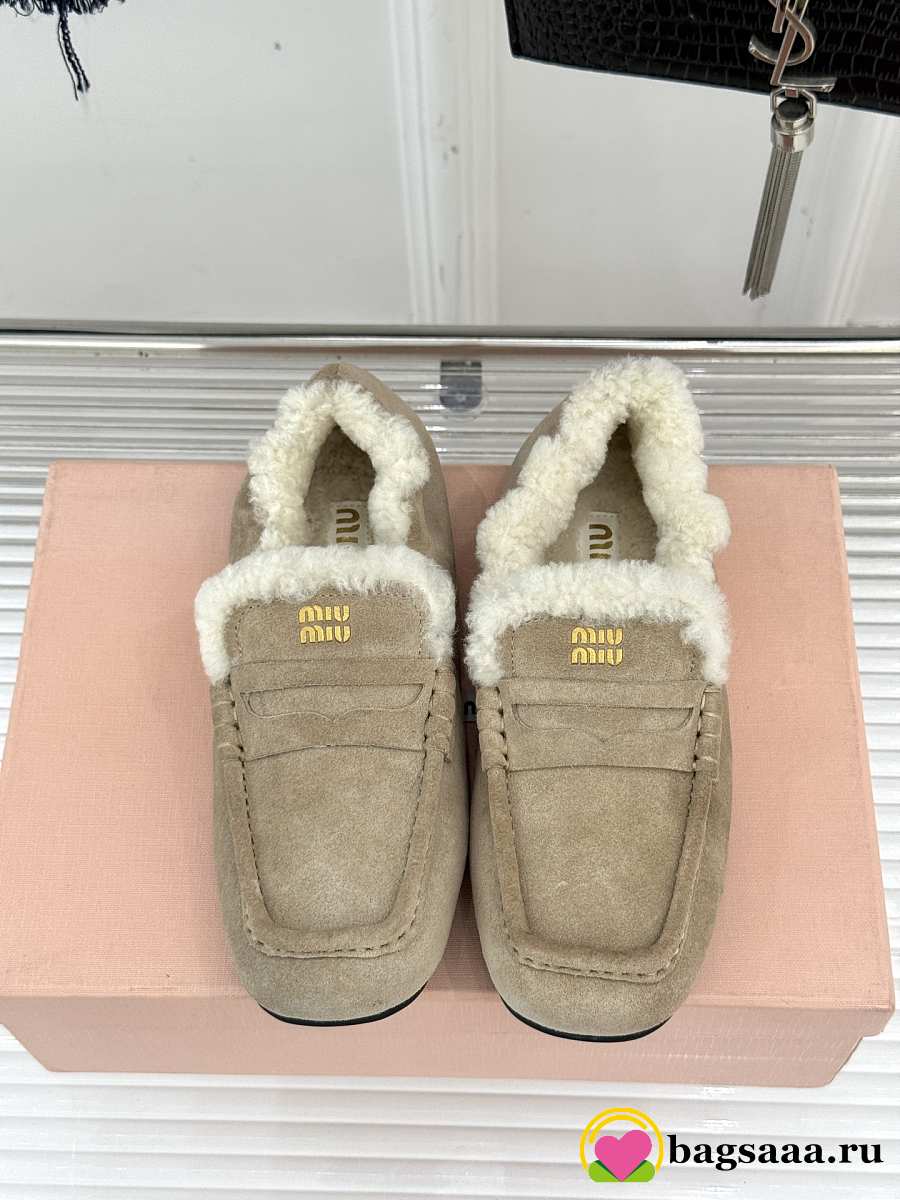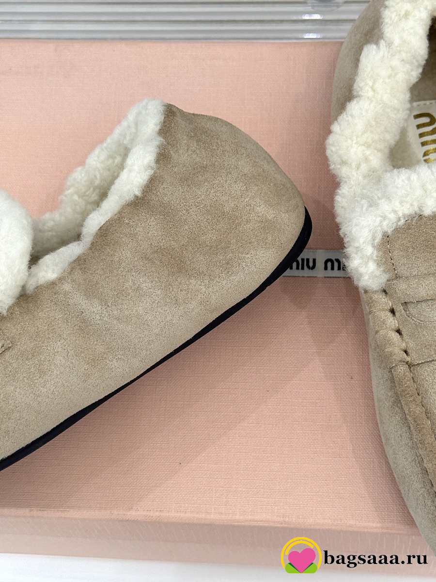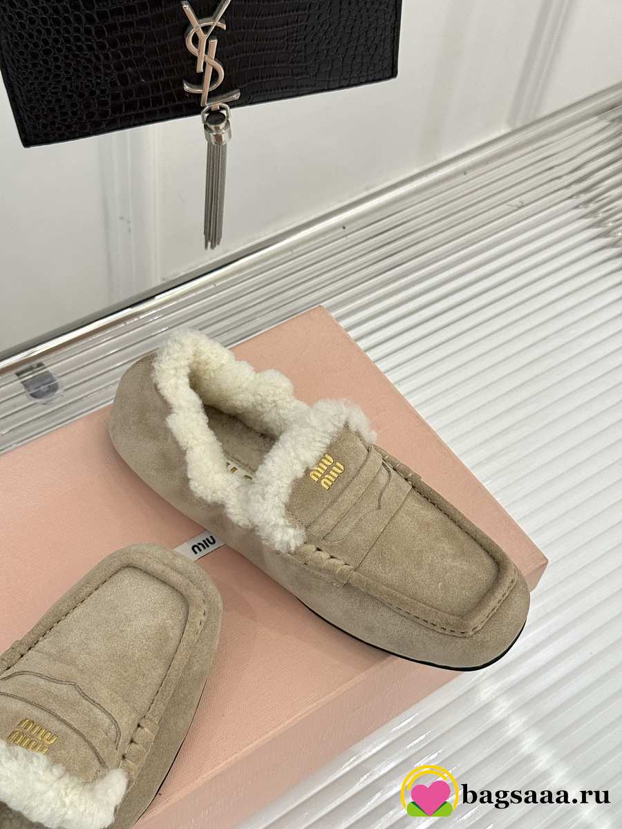 Bagsaaa Miu Miu shearling-lined suede penny loafers in beige