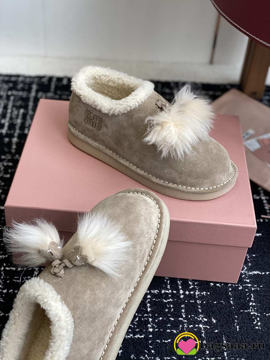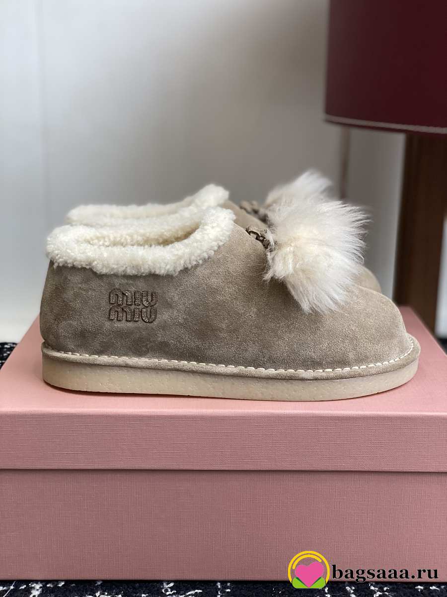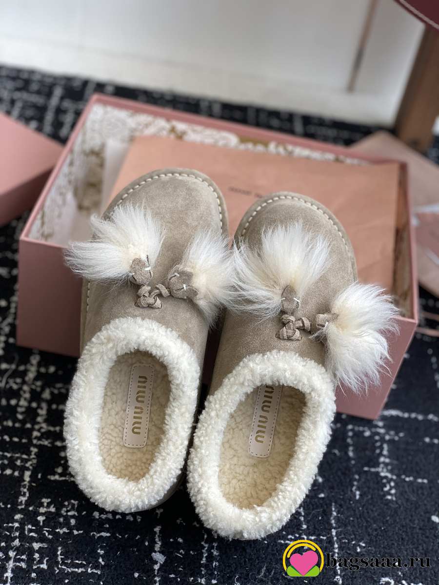 Bagsaaa Miu Miu Suede Shearling Slippers beige