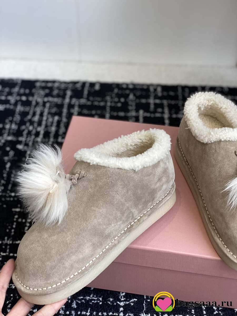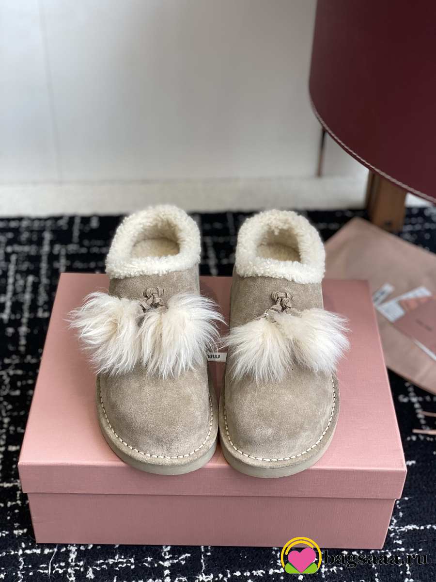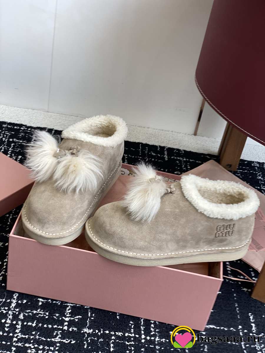 Bagsaaa Miu Miu Suede Shearling Slippers beige