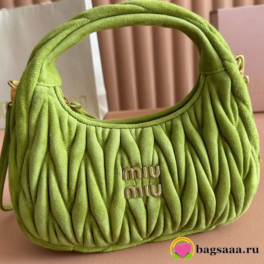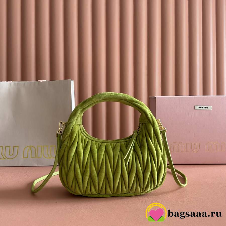 Bagsaaa Miu Miu Wander matelassé suede bag 5BC125 green - 20cm