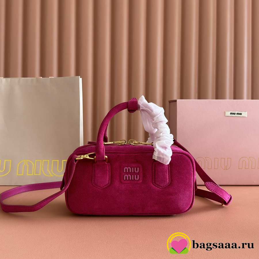 Bagsaaa Miumiu Arcadie padded suede top-handle bag 5BB142 fuchsia - 22cm