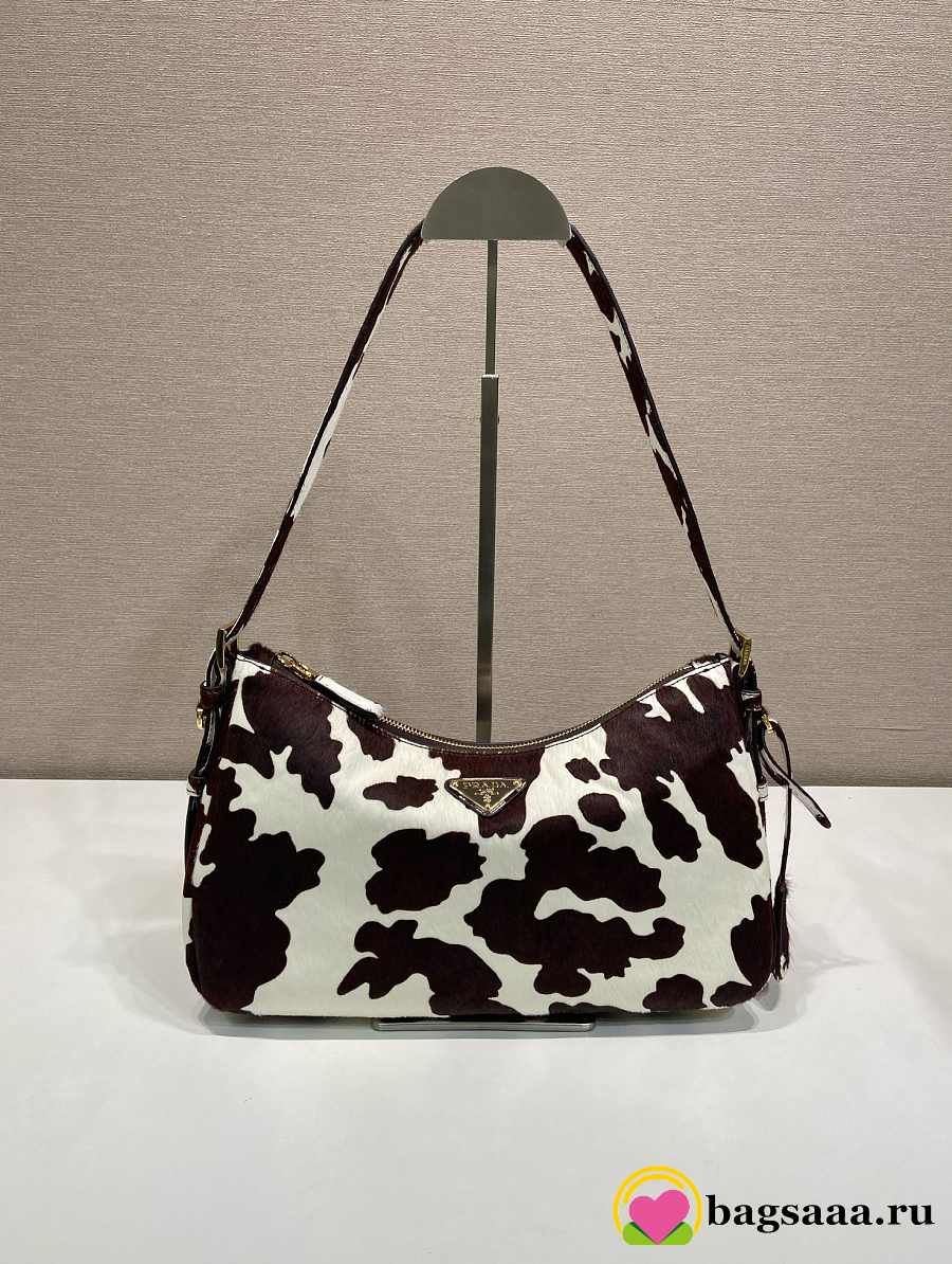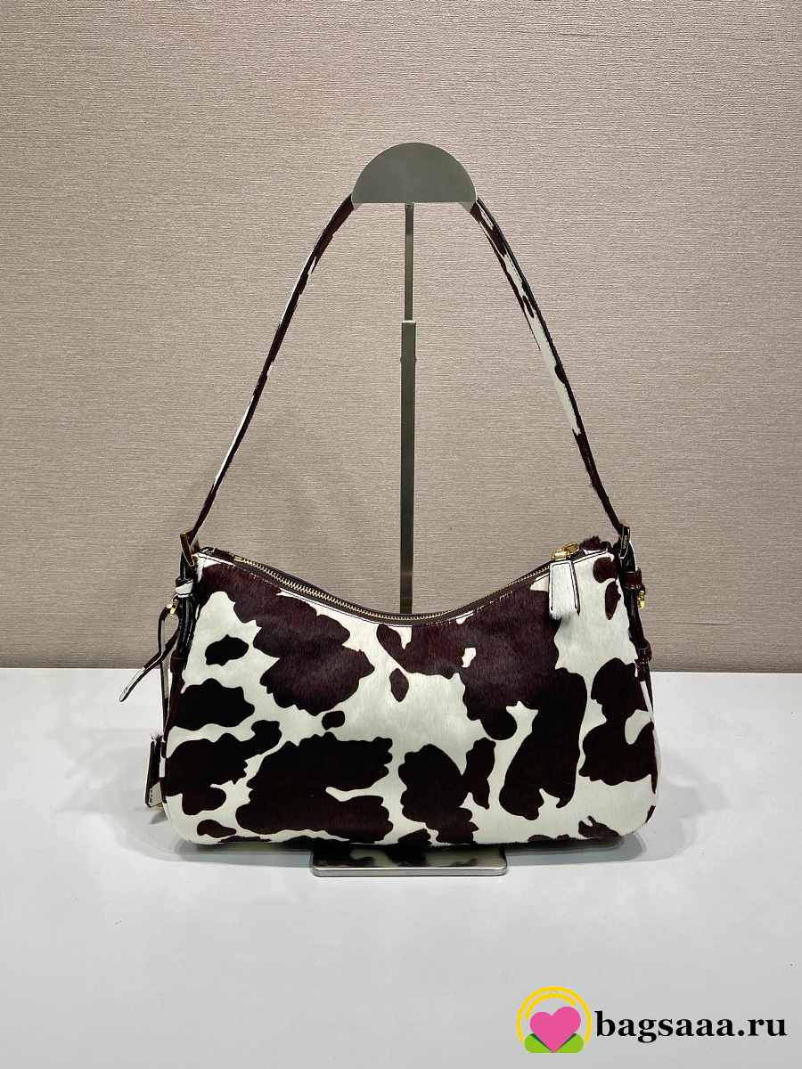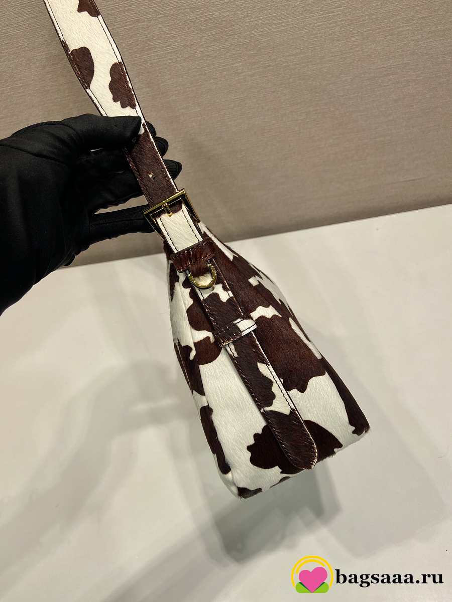 Bagsaaa Prada Aimèe medium printed calf hair shoulder bag in white and dark brown 1BC229 - 31cm