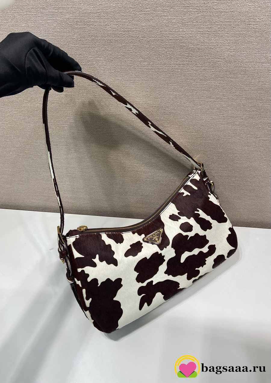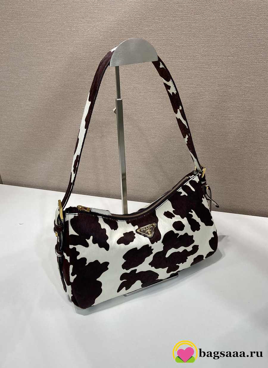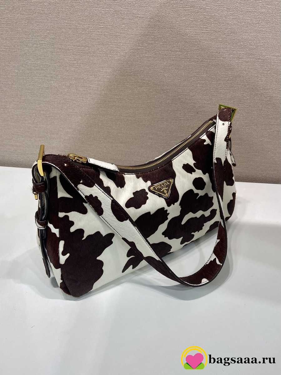 Bagsaaa Prada Aimèe medium printed calf hair shoulder bag in white and dark brown 1BC229 - 31cm
