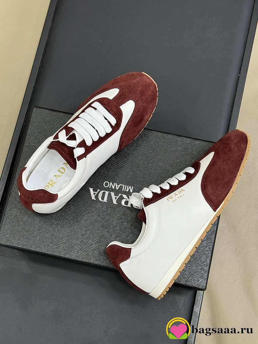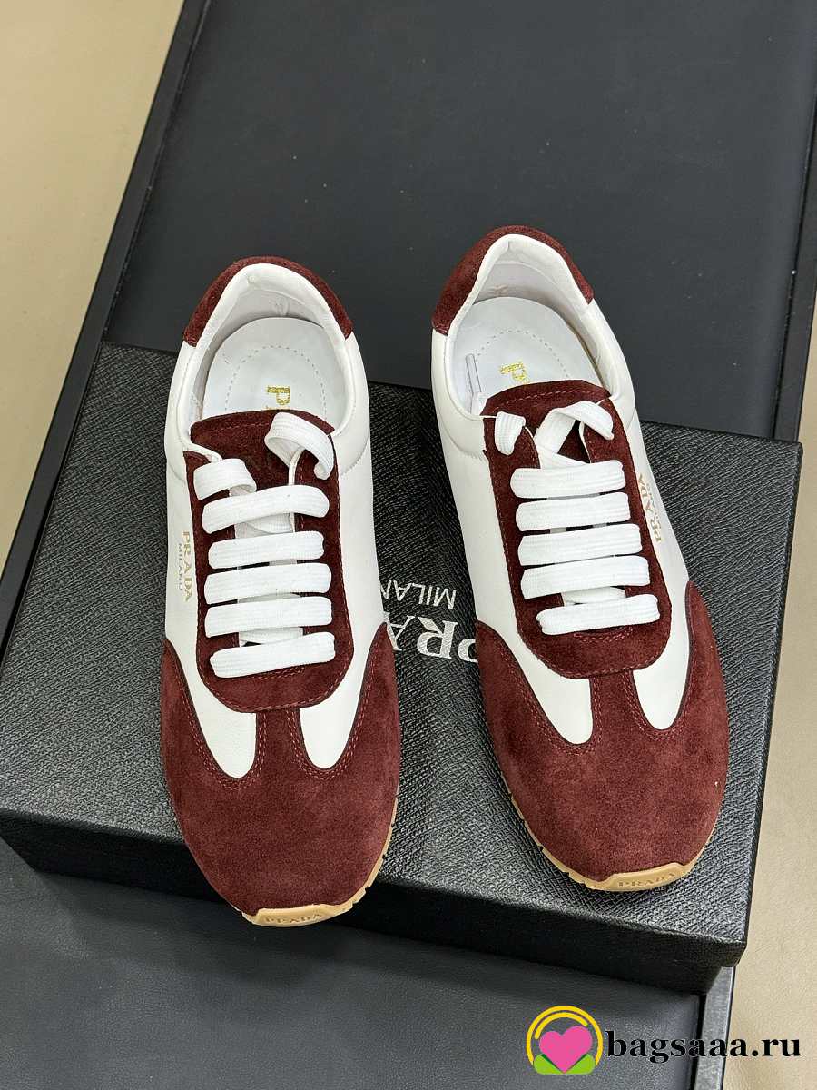Bagsaaa Prada Nappa leather and suede sneakers Ivory/Burgundy