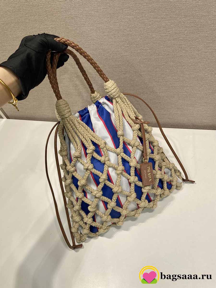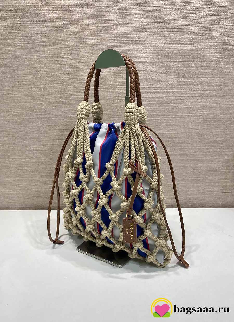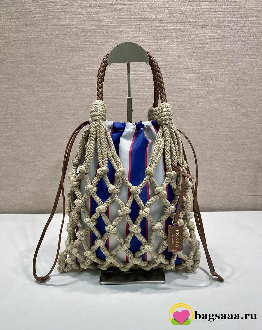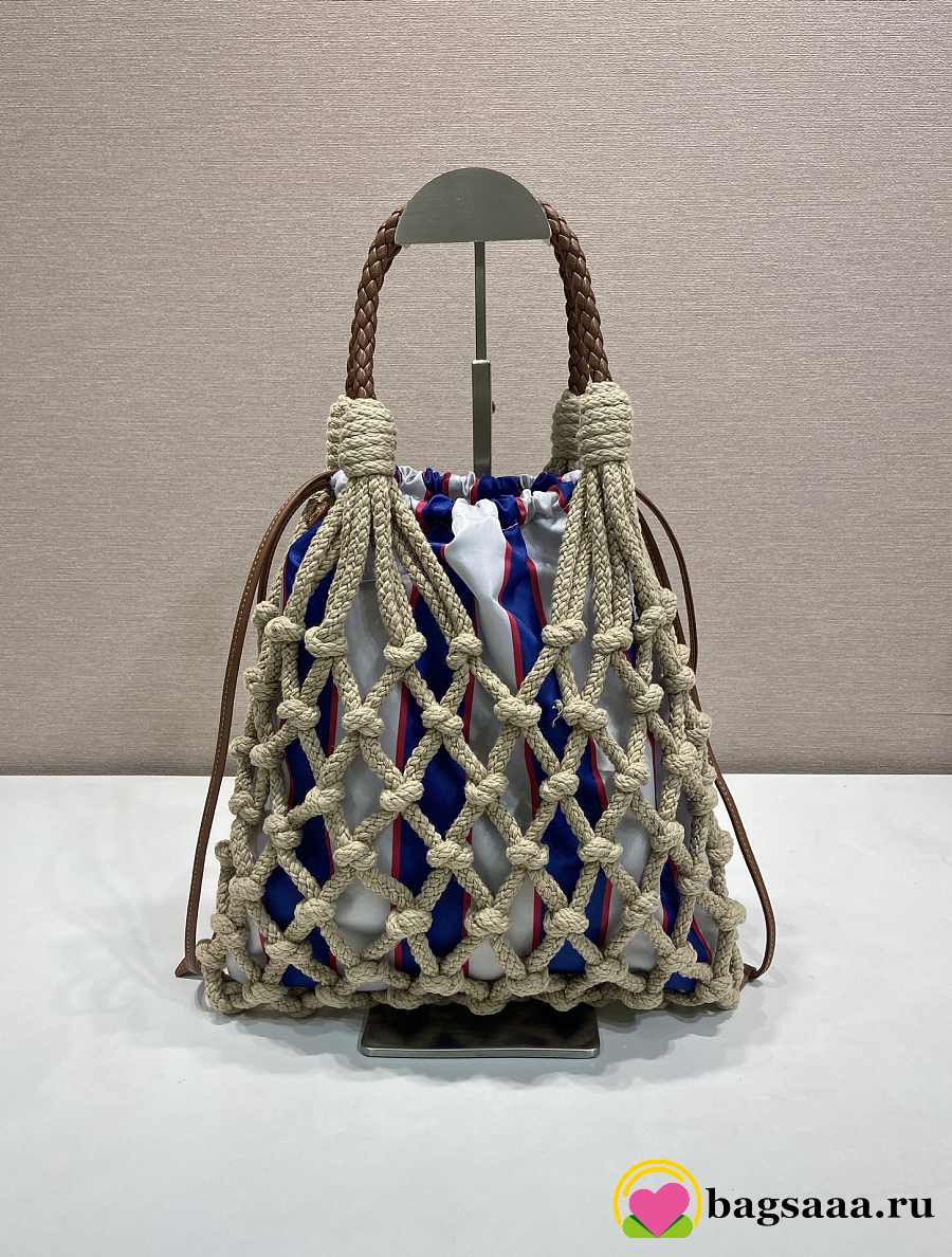 Bagsaaa Prada Noué medium cotton macramé bag 1BC111 Cord/Royal Blue - 37cm