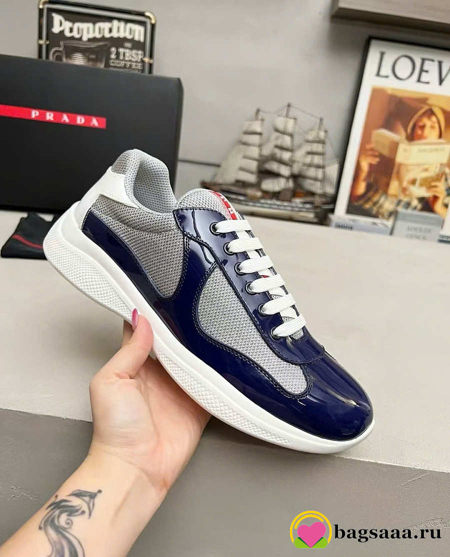 Bagsaaa Prada Patent leather and technical fabric Prada America's Cup sneakers navy blue