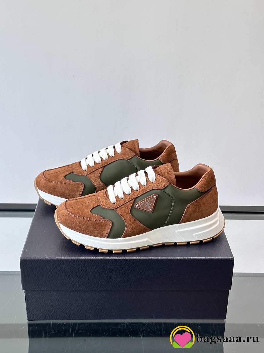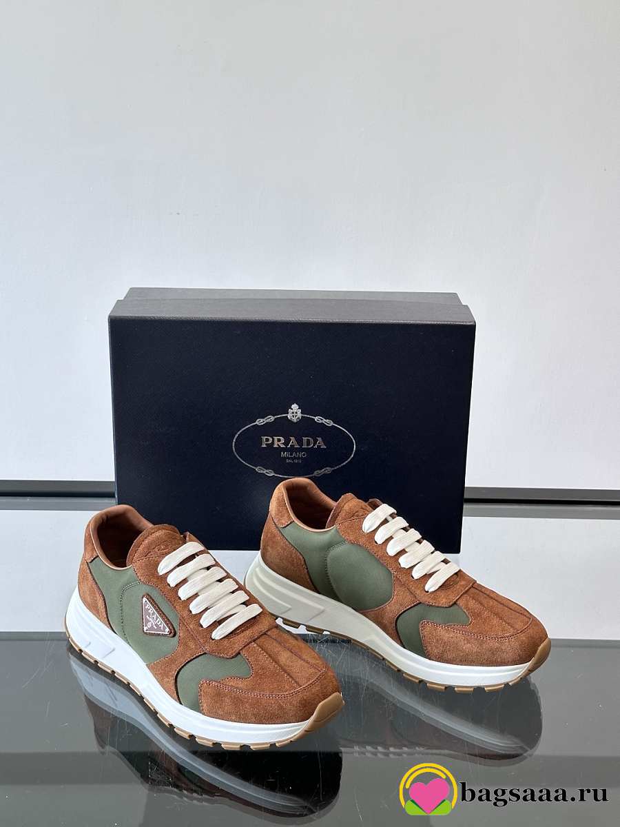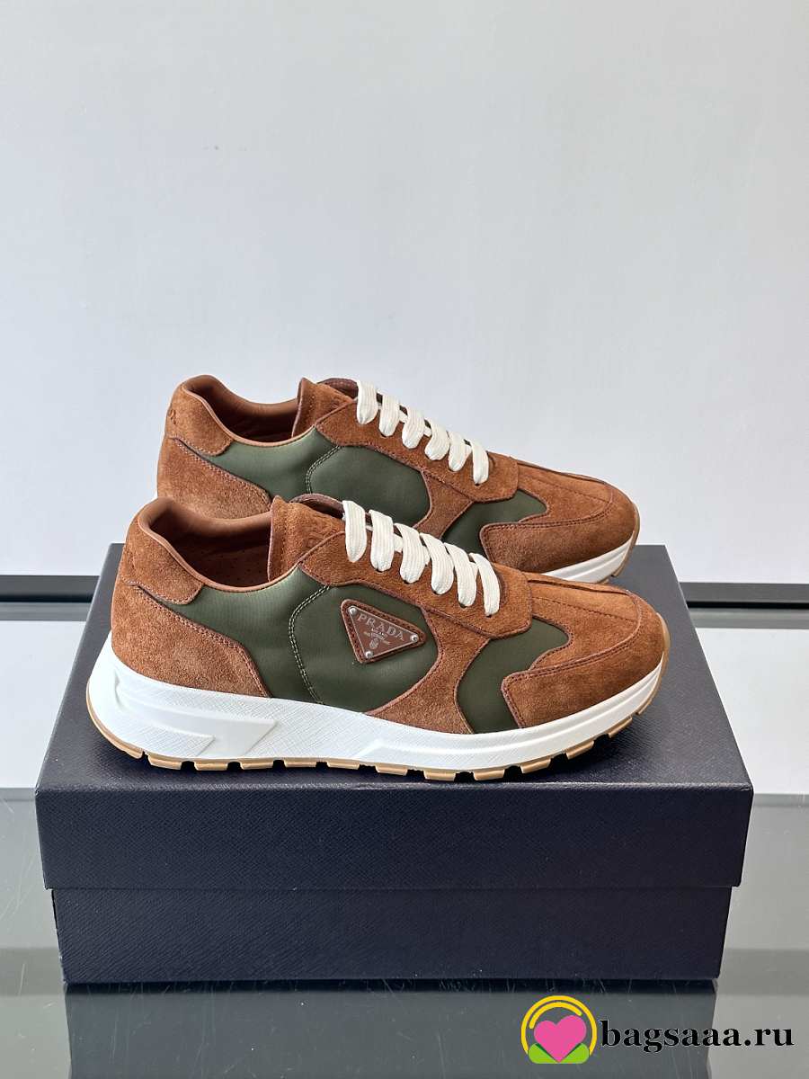 Bagsaaa Prada Prax suede and Re-Nylon sneakers Cocoa Brown/Green
