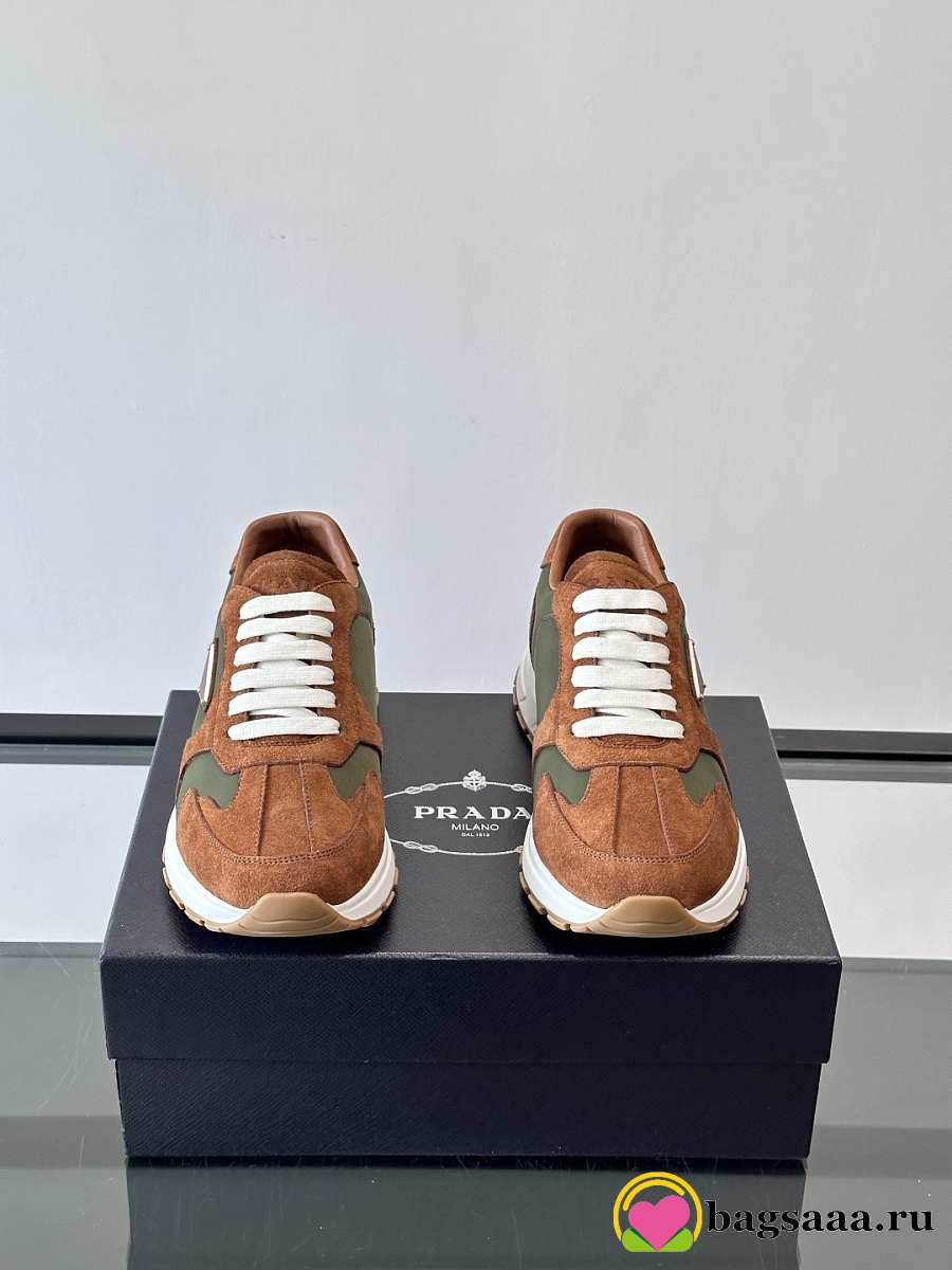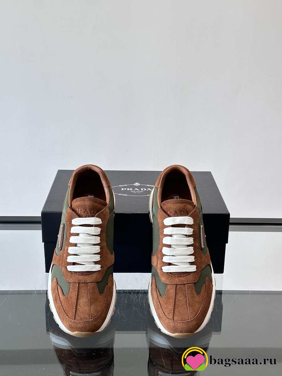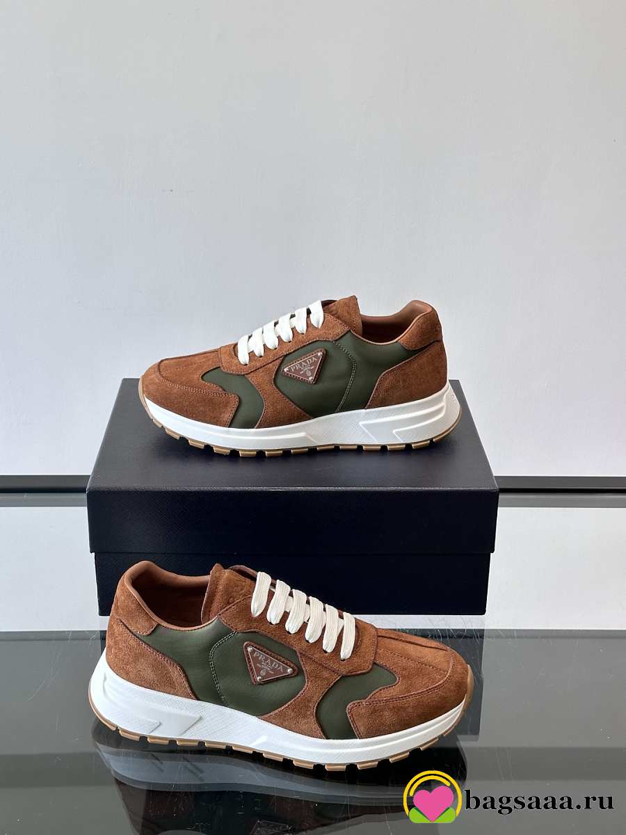 Bagsaaa Prada Prax suede and Re-Nylon sneakers Cocoa Brown/Green
