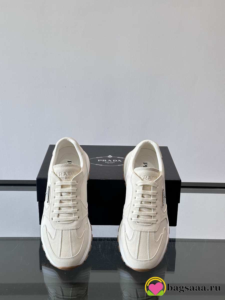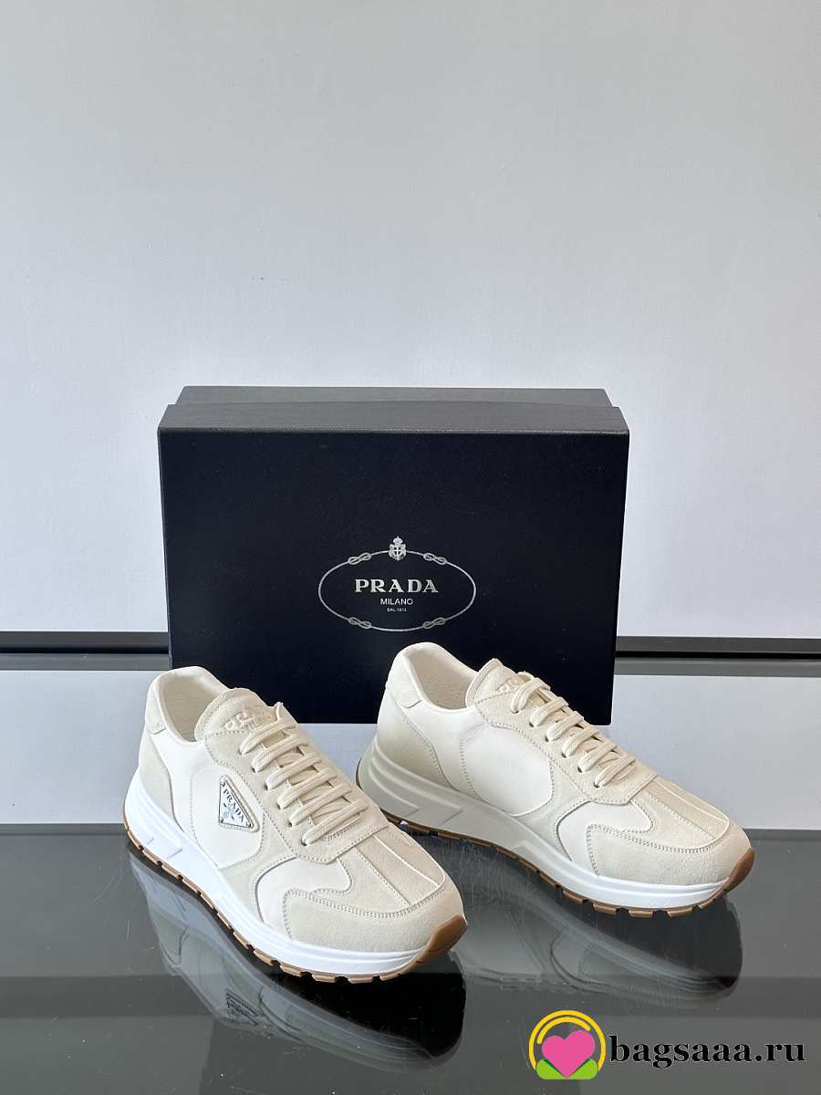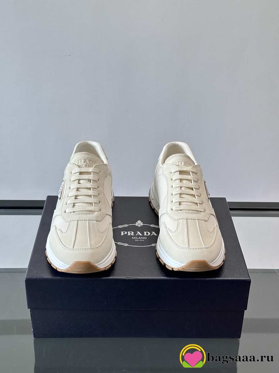 Bagsaaa Prada Prax suede and Re-Nylon sneakers white