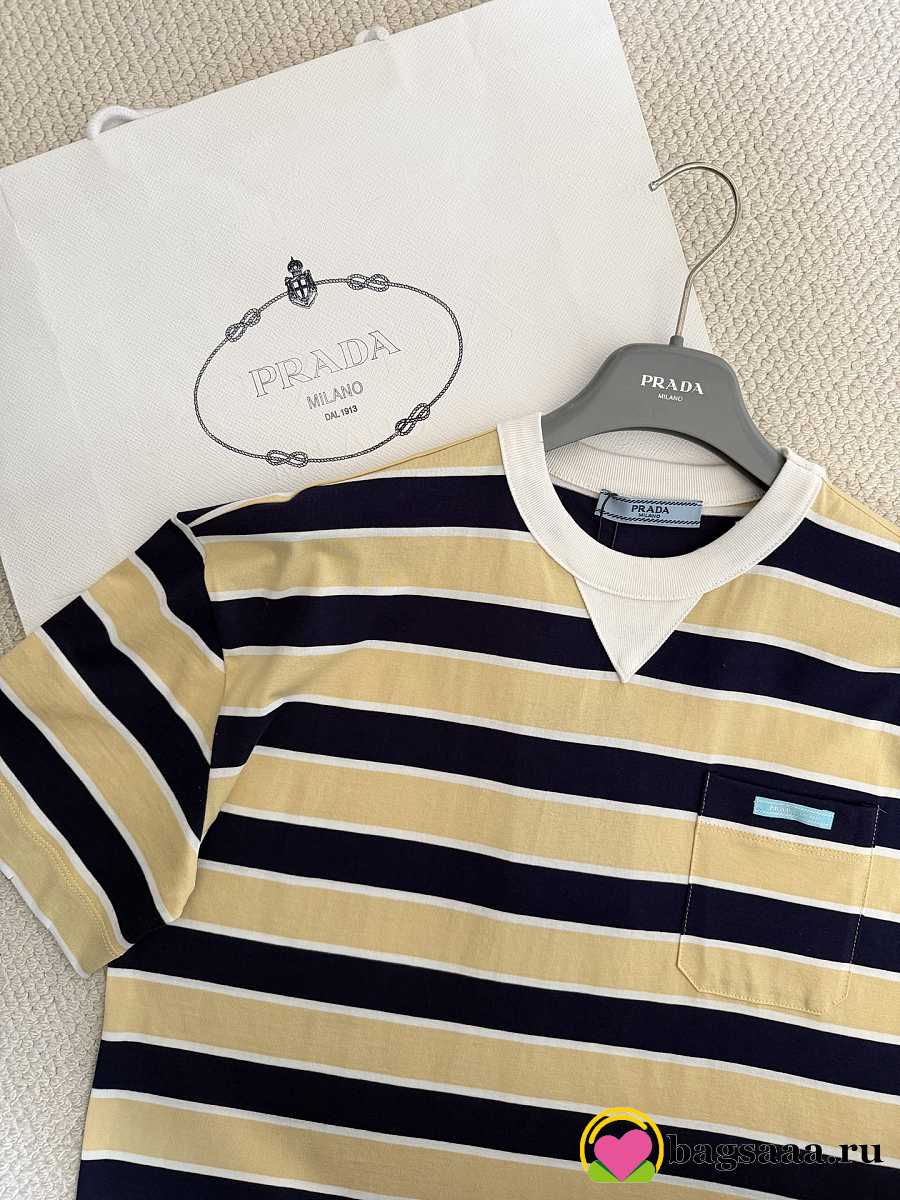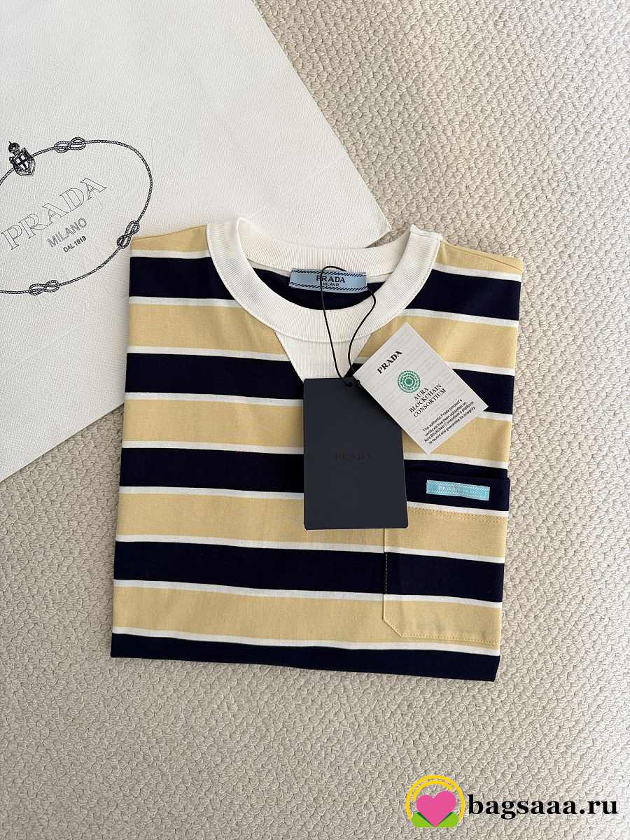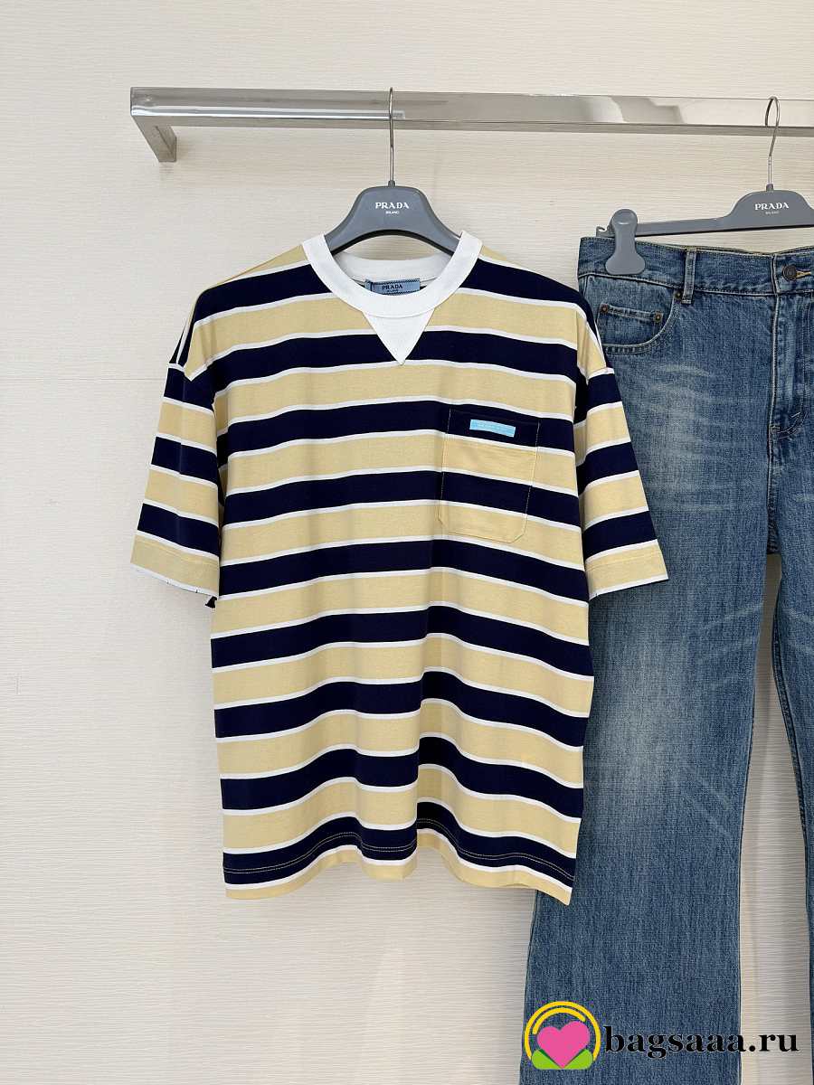 Bagsaaa Prada striped cotton lisle T-shirt in cream and navy blue