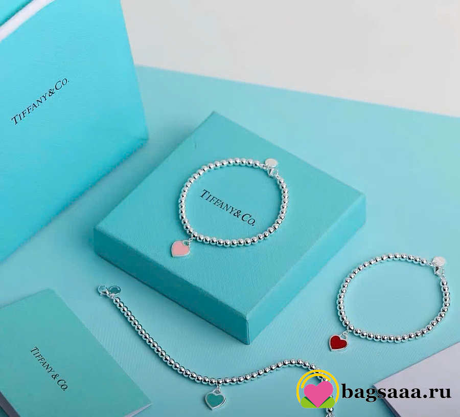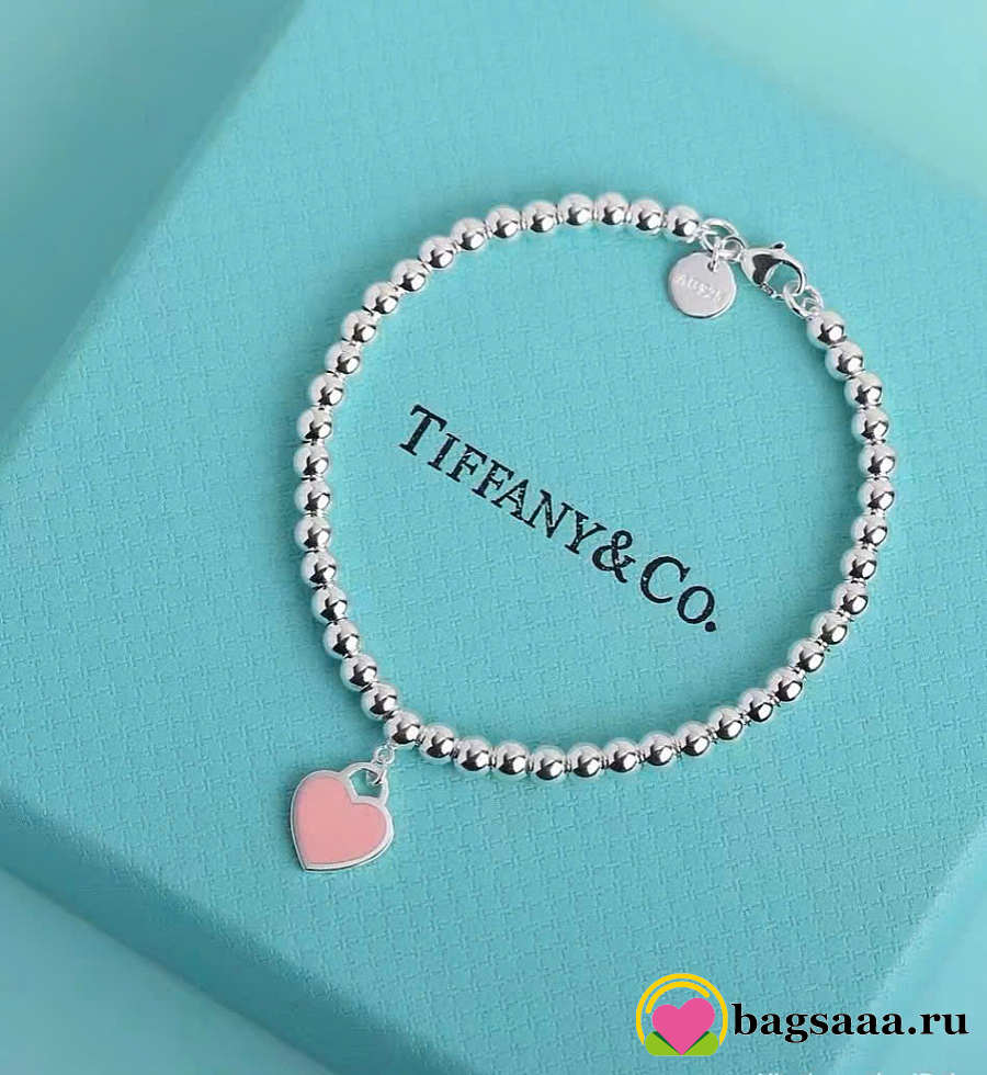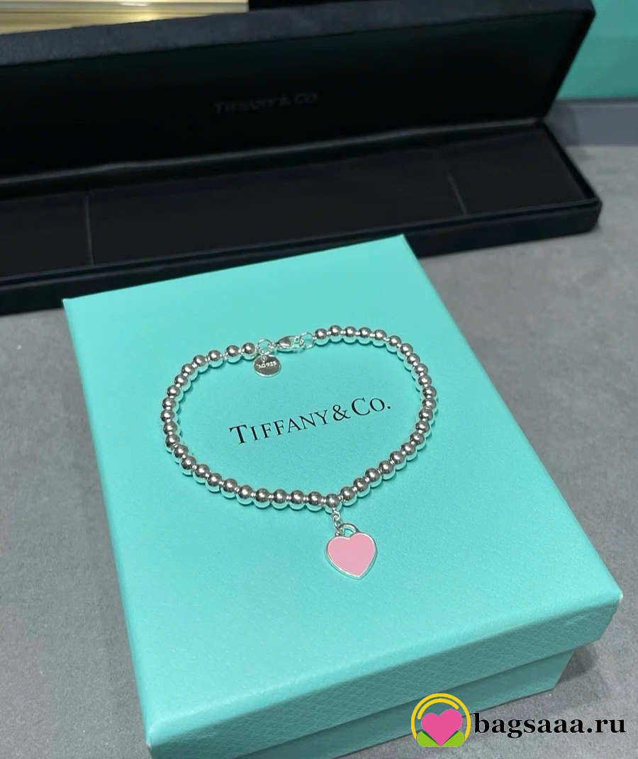 Bagsaaa Return to Tiffany Pink Heart Tag Bead Bracelet in Silver