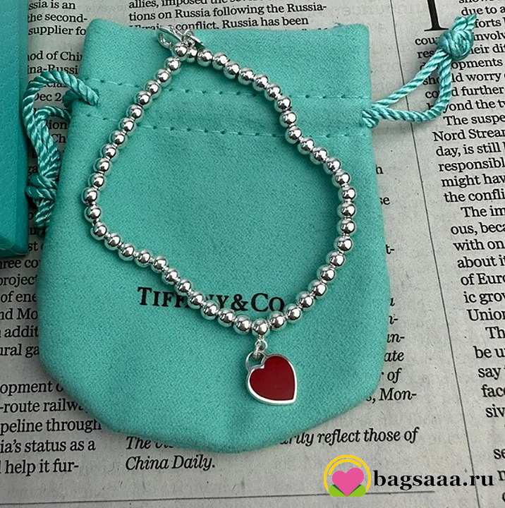 Bagsaaa Return to Tiffany Red Heart Tag Bead Bracelet in Silver