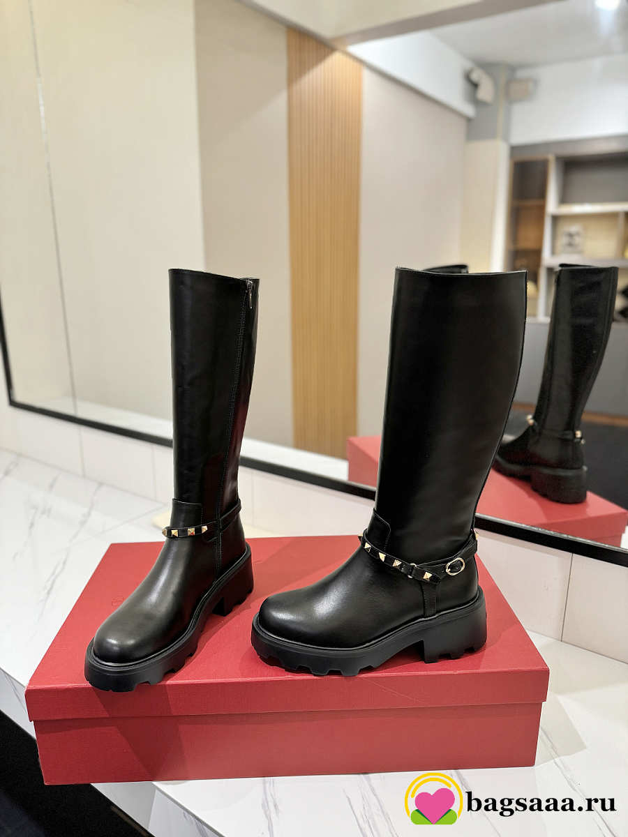Bagsaaa Valentino Garavani Rockstud-embellished knee-high leather boots black