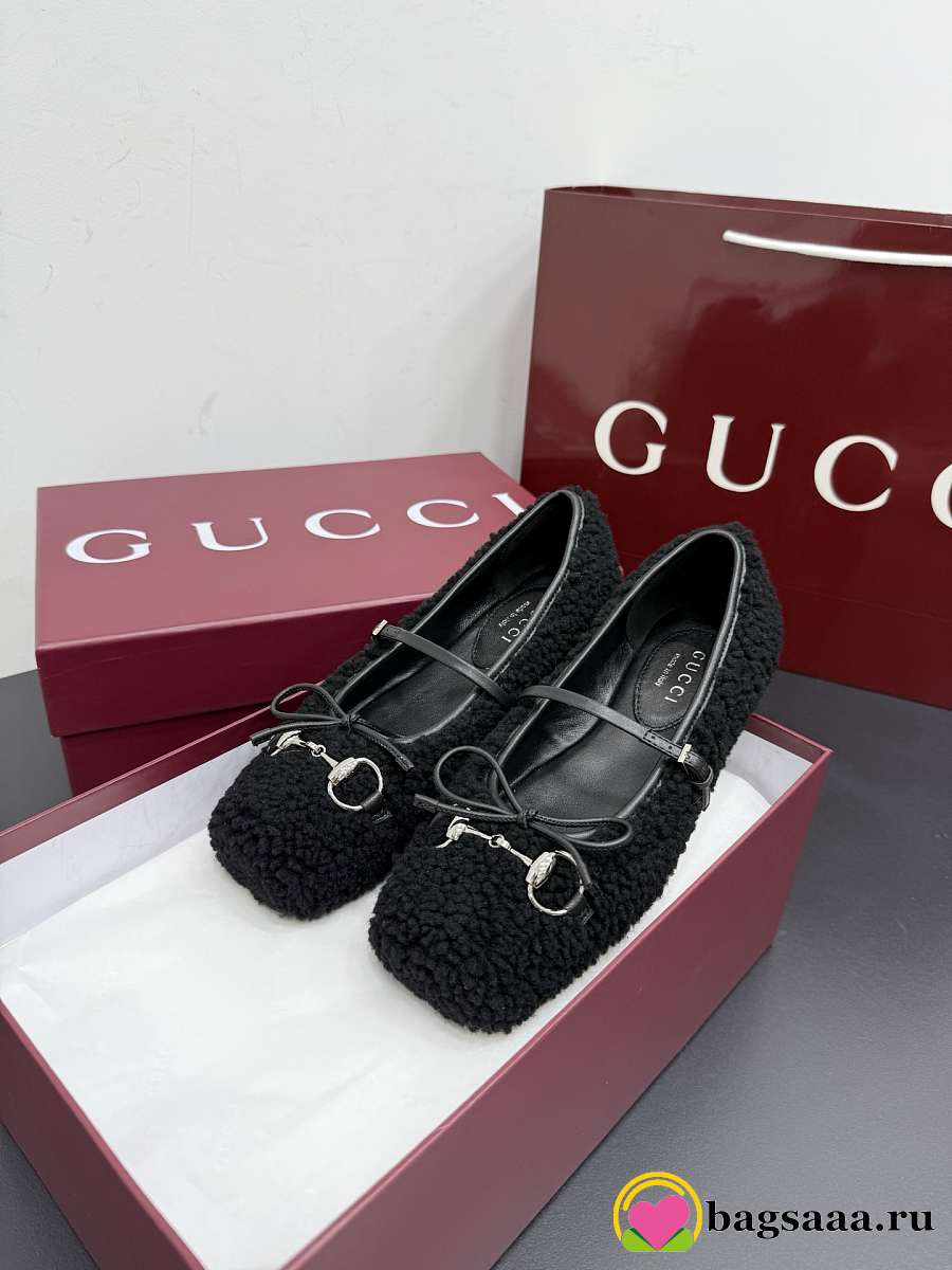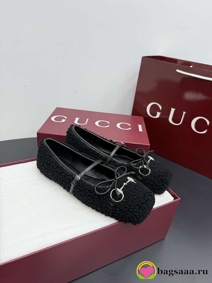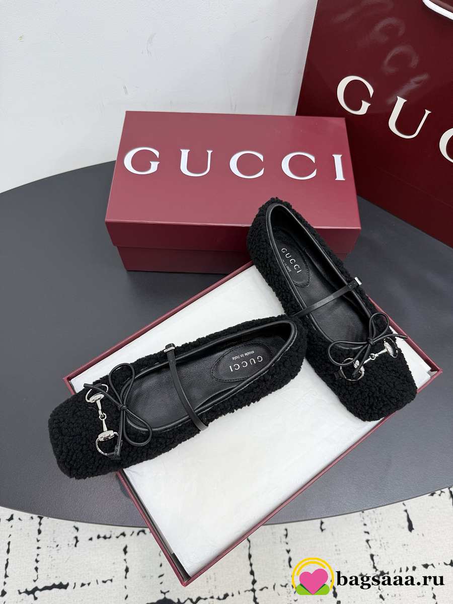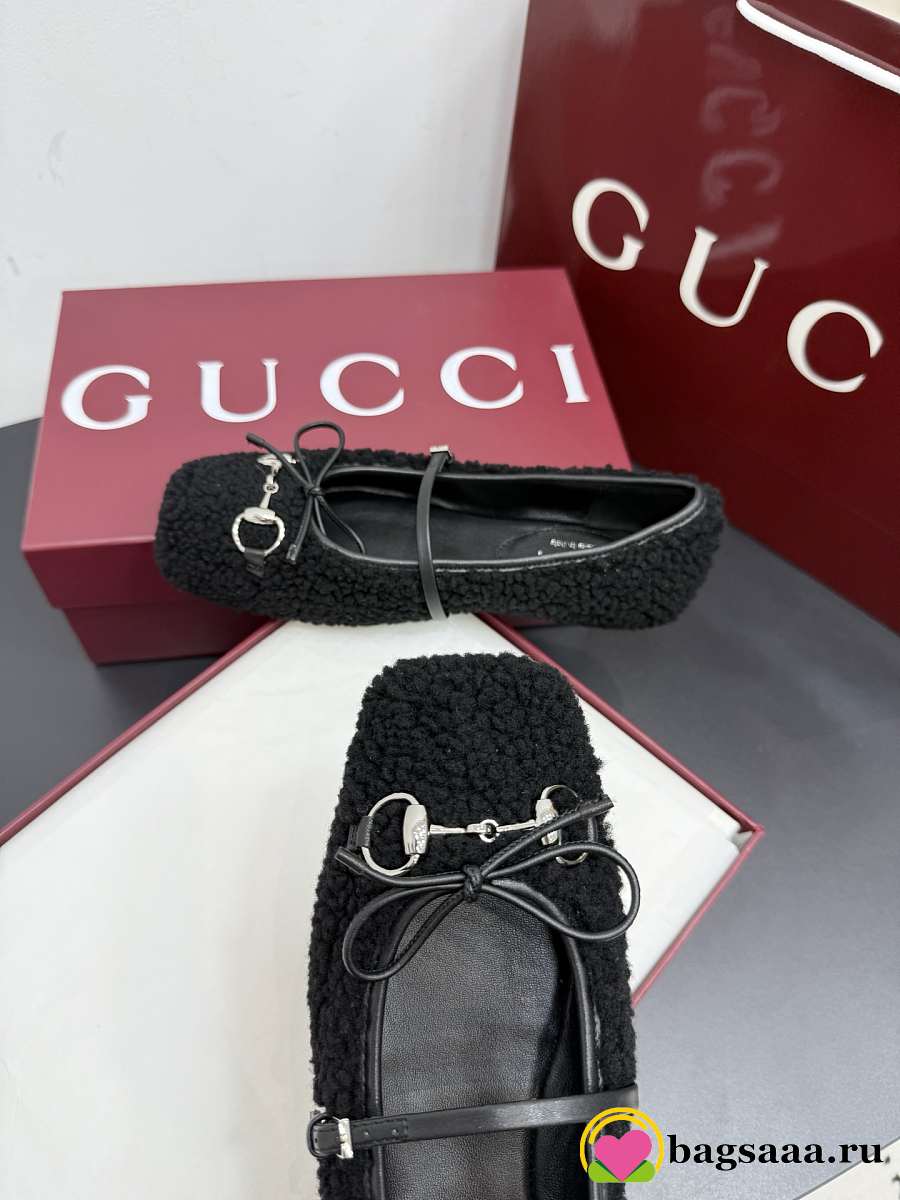 Bagsaaa Women's Gucci Horsebit ballet flat black wool 839411