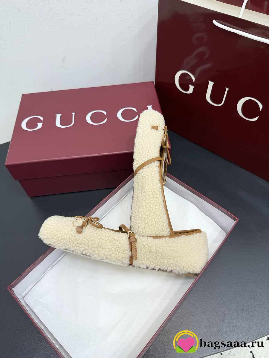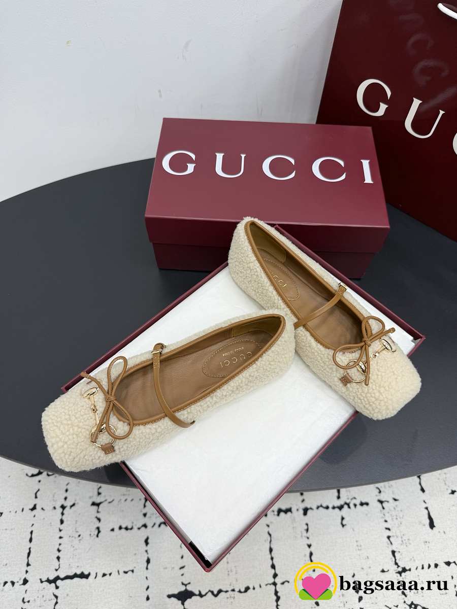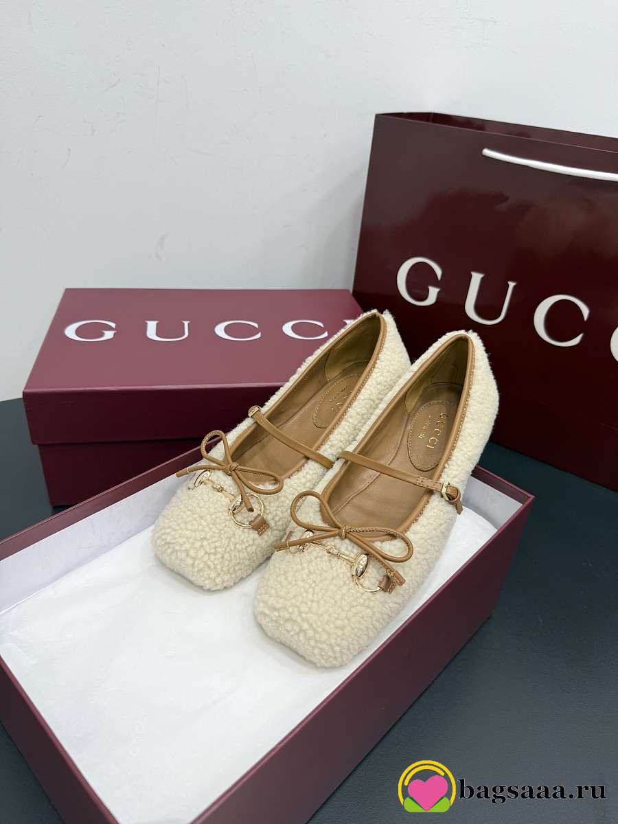 Bagsaaa Women's Gucci Horsebit ballet flat Light beige merino wool 839411