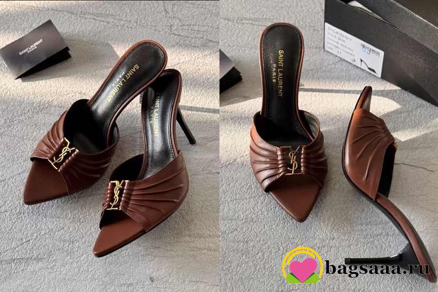 Bagsaaa YSL Babylone mules in smooth leather brown tan - 9cm