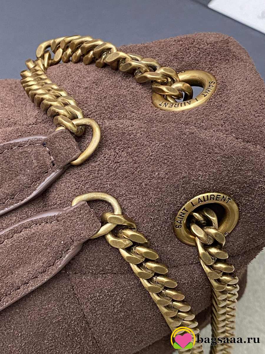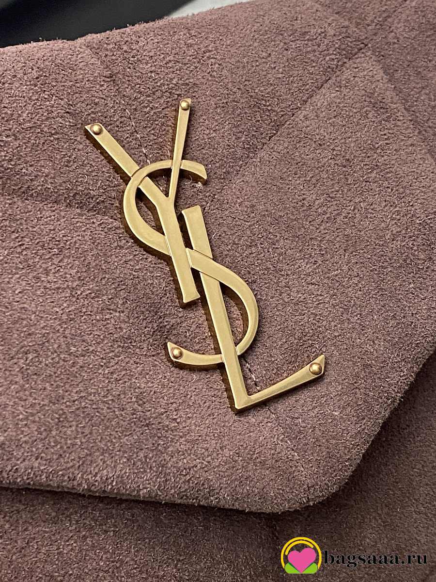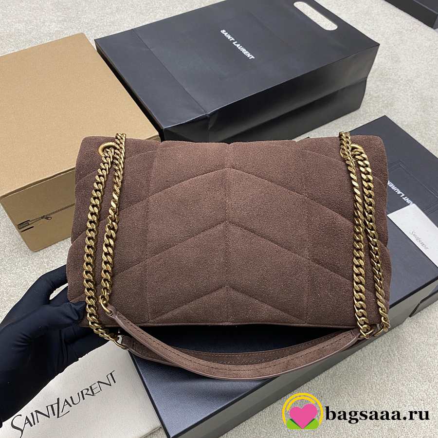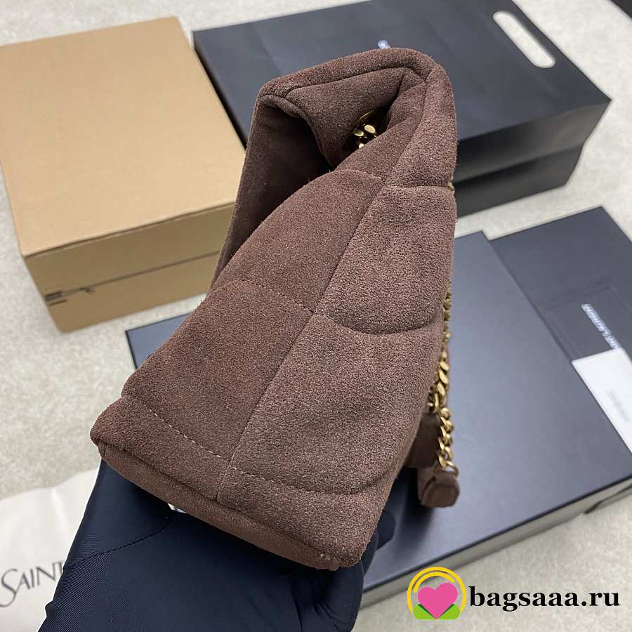 Bagsaaa YSL Saint Laurent Puffer Small shoulder bag in brown suede with gold - 29cm