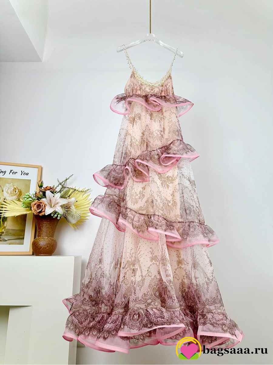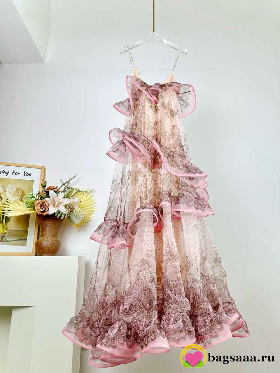 Bagsaaa Zimmermann Crush embellished silk-organza maxi dress in the Pink Lace