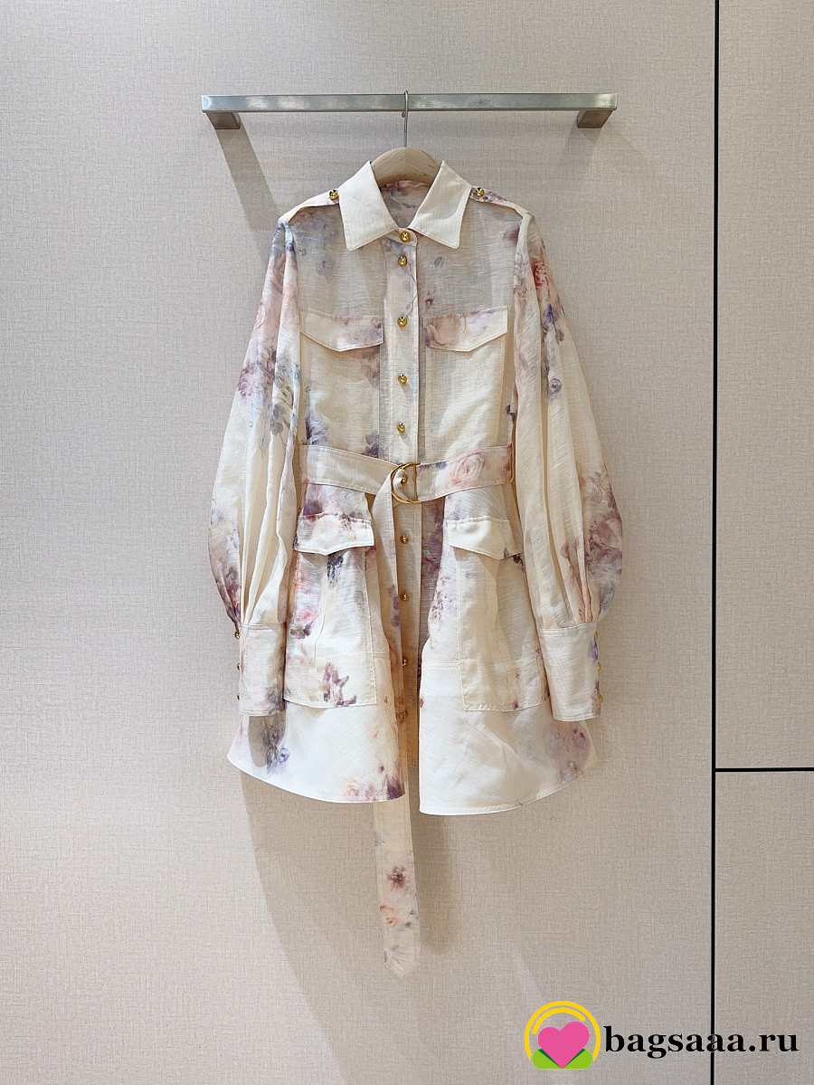 Bagsaaa Zimmermann Hypnotic Utility Mini Dress in cream floral linen