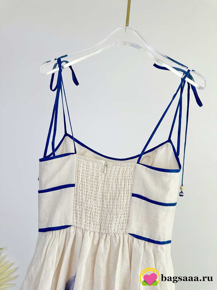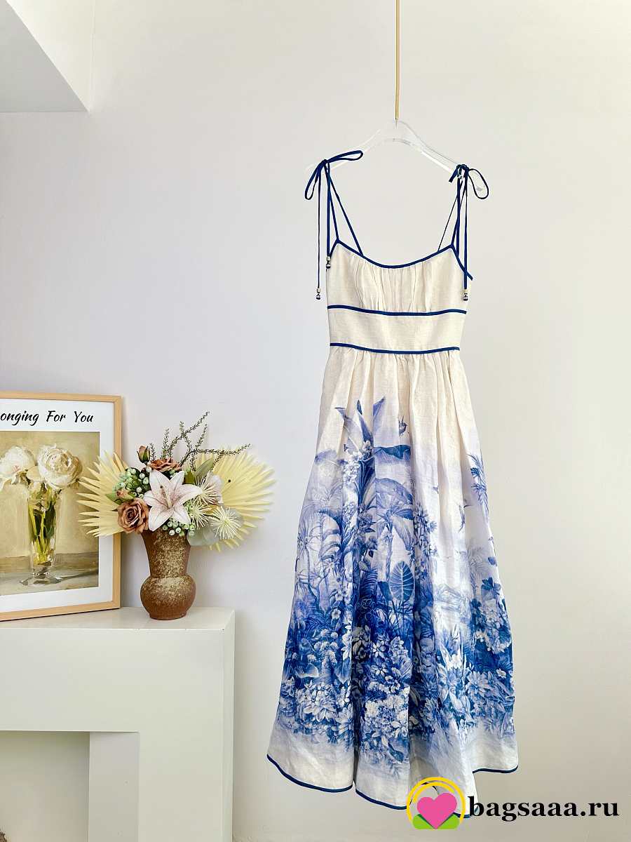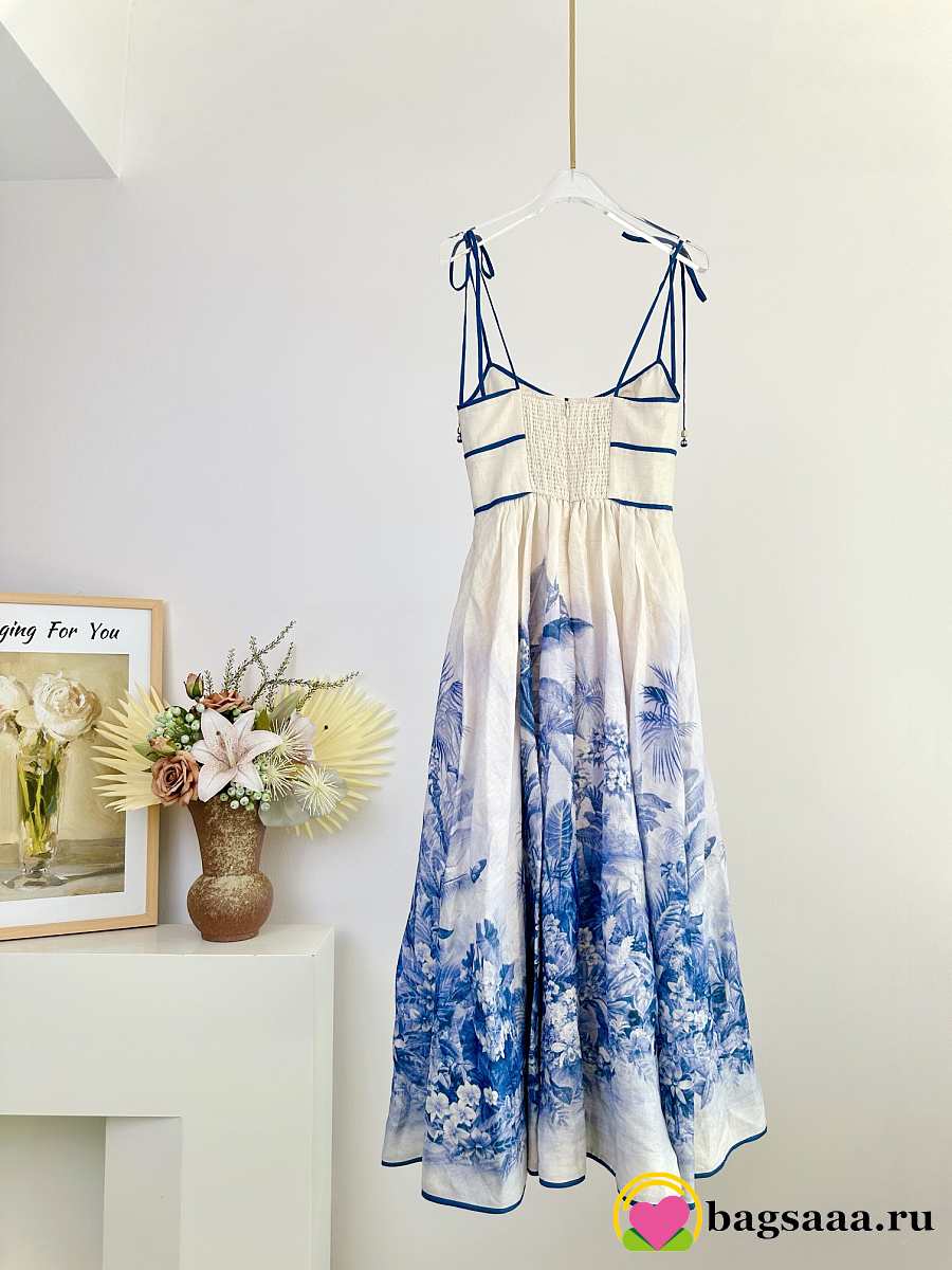 Bagsaaa Zimmermann Wylie shirred printed linen midi dress in blue palm