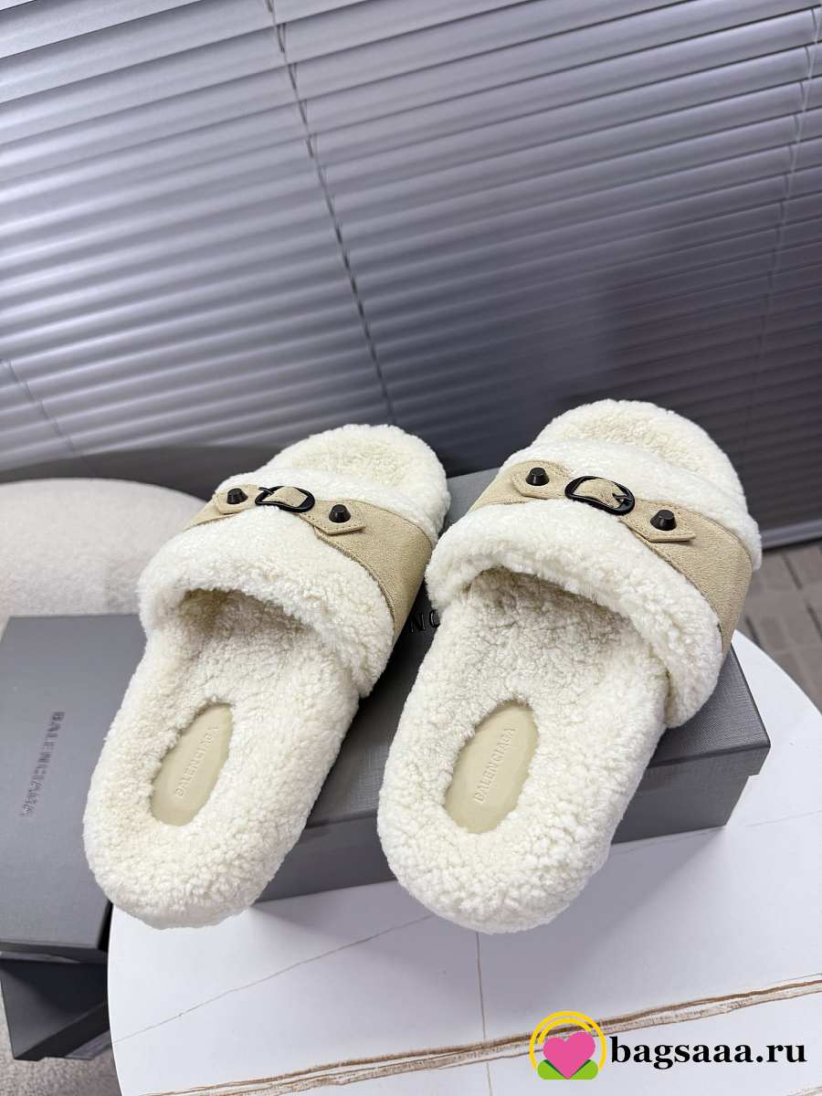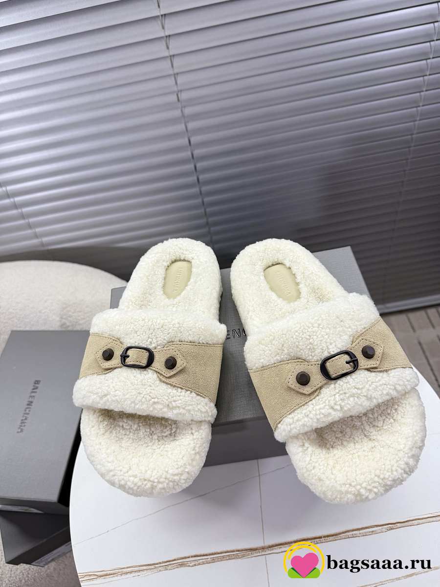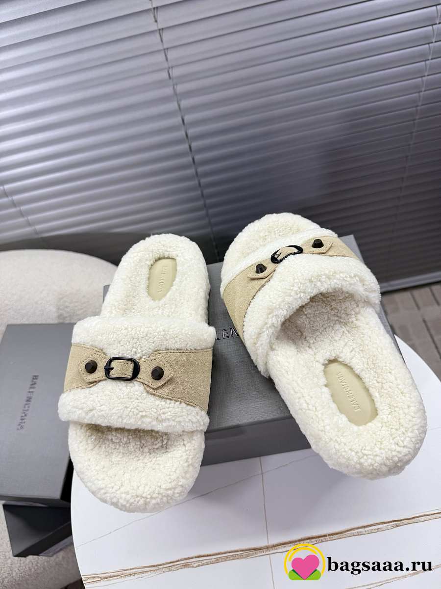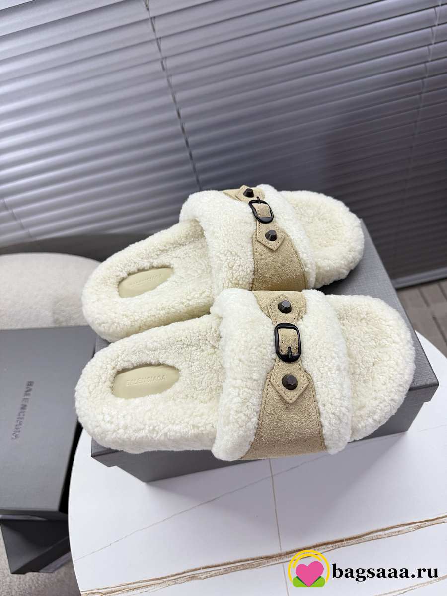 Bagsaaa Balenciaga Furry Slide Sandals with beige