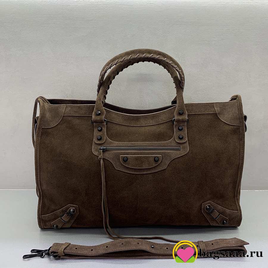 Bagsaaa Balenciaga Le City Bag Large in light espresso waxed suede calfskin brown - 46cm