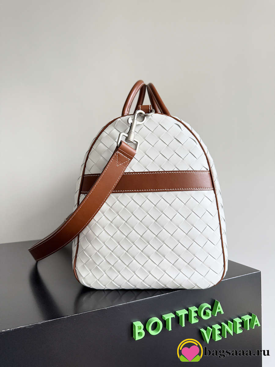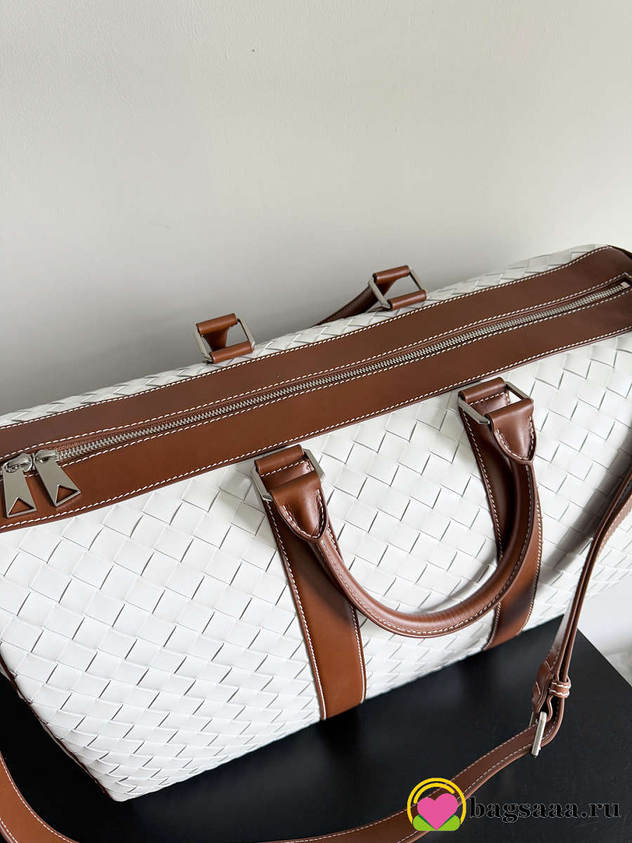 Bagsaaa Bottega Veneta Medium Classic Intrecciato Duffle Bag in white and camel - 55cm