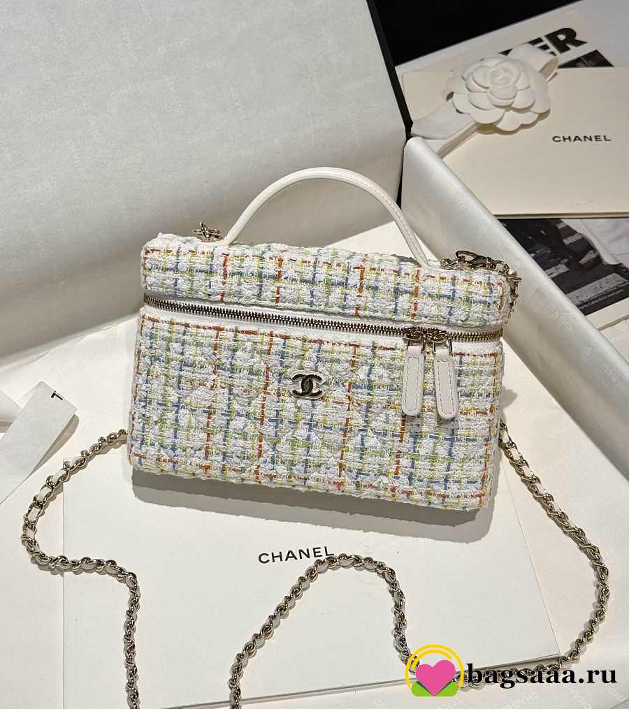 Bagsaaa Chanel 25C white and multicolor tweed vanity bag - 19.5cm