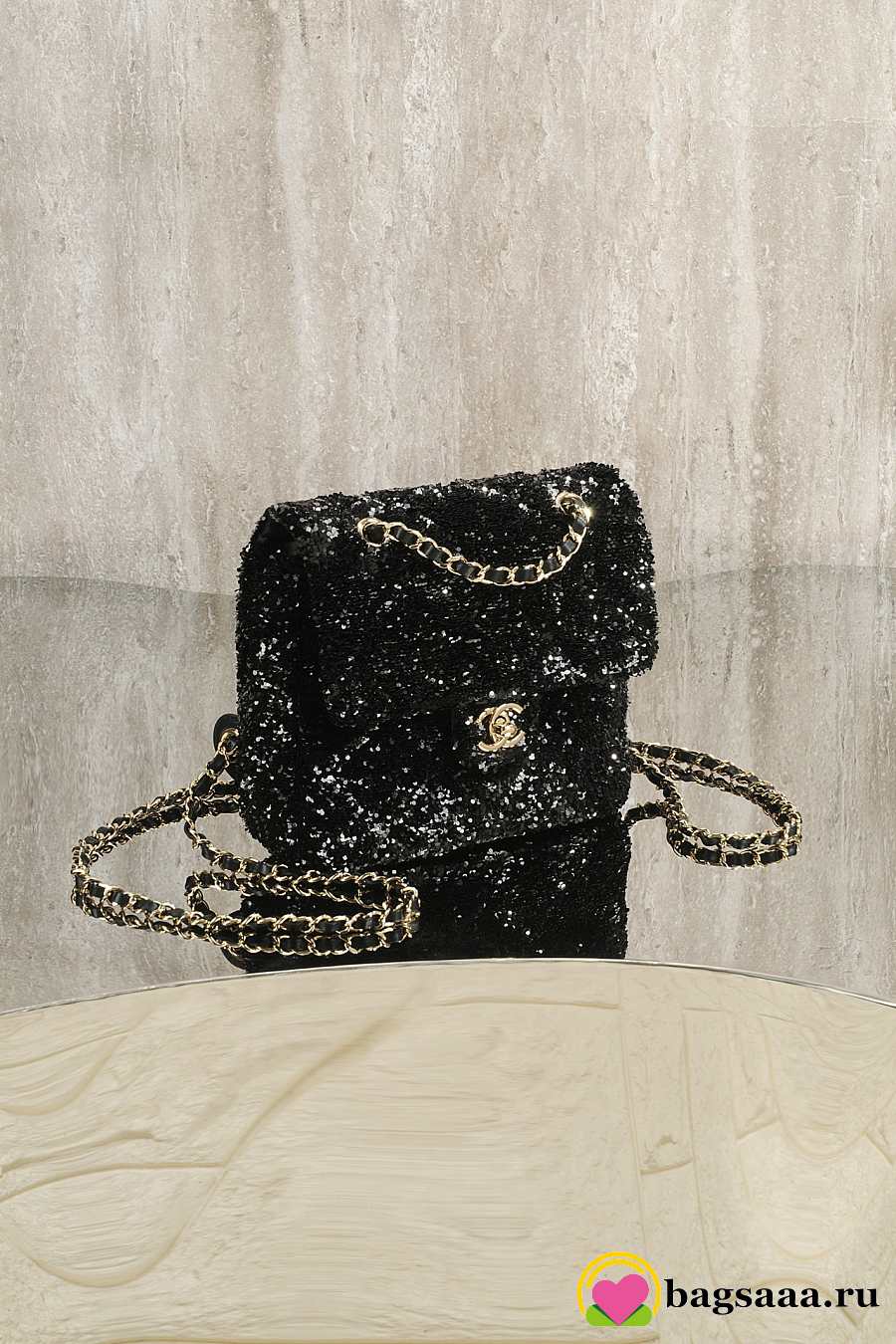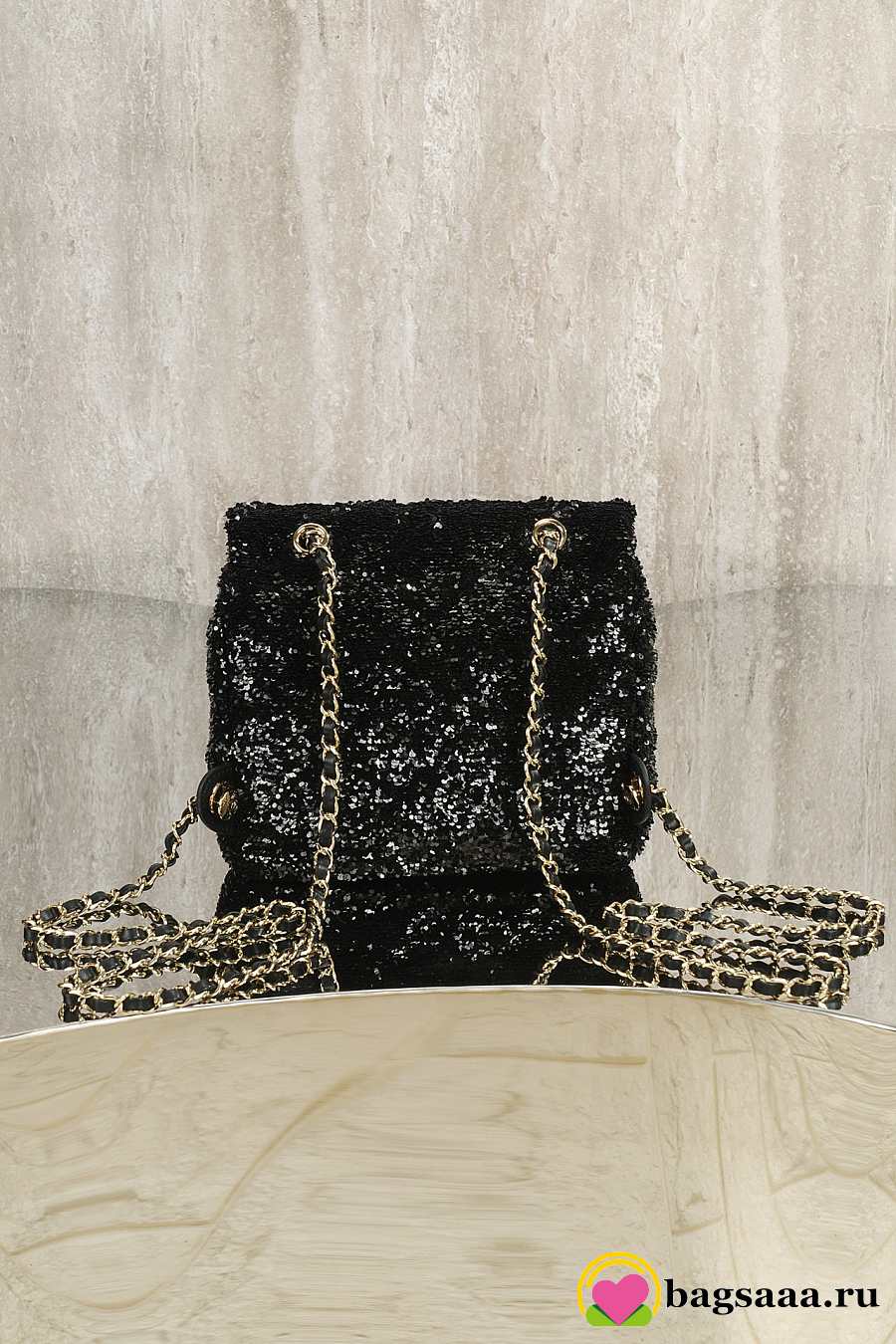 Bagsaaa Chanel Backpack AS5711 Black Quilted Sequins - 21cm