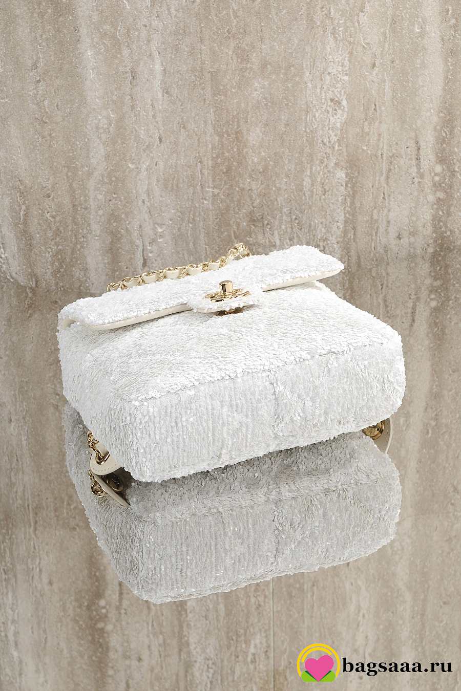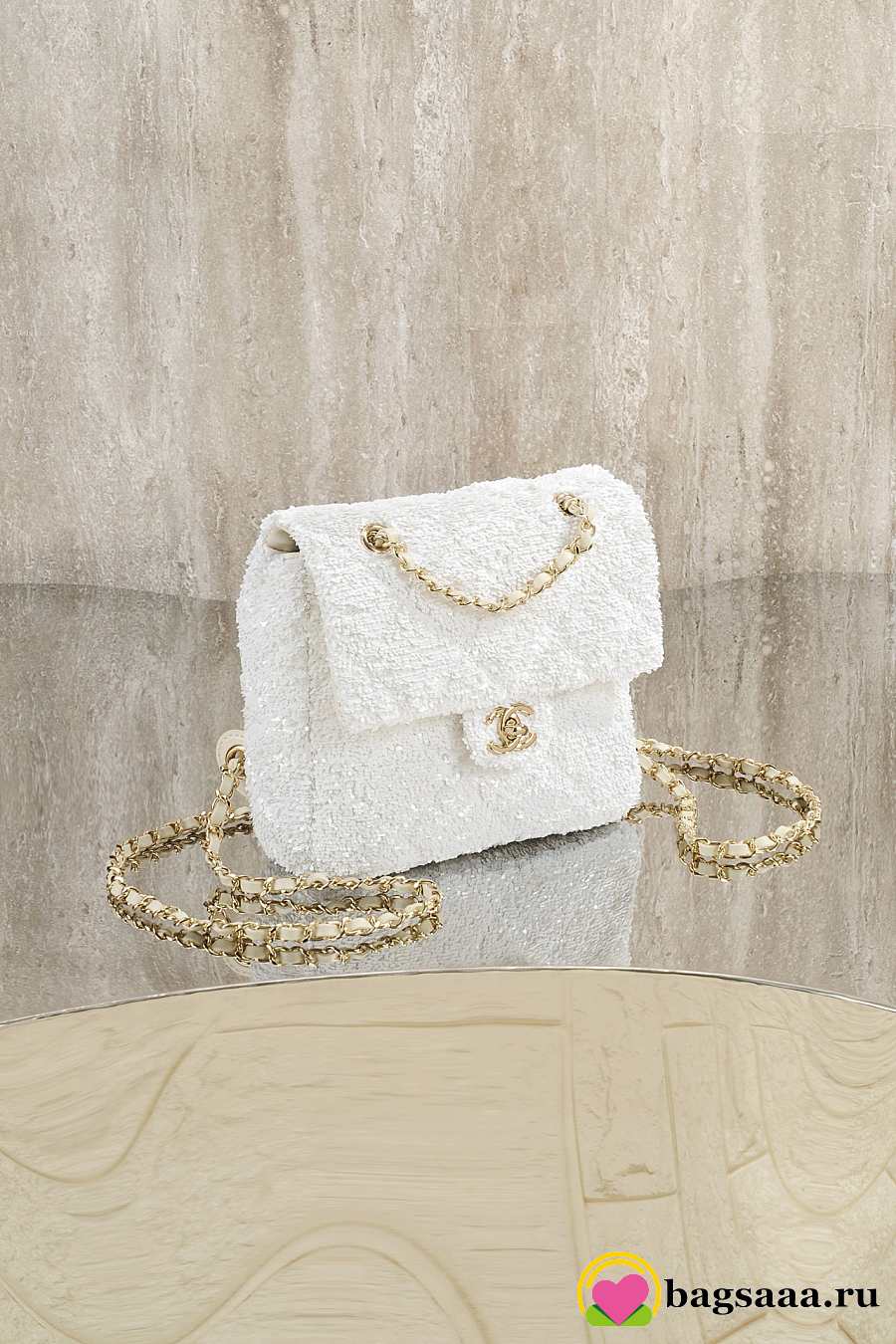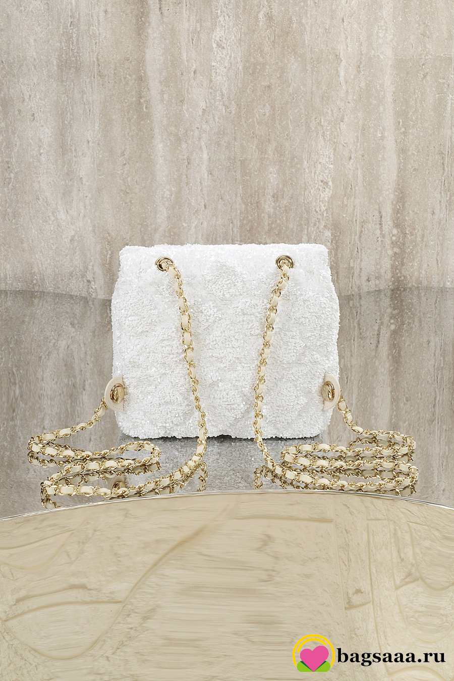 Bagsaaa Chanel Backpack AS5711 White Quilted Sequins - 21cm