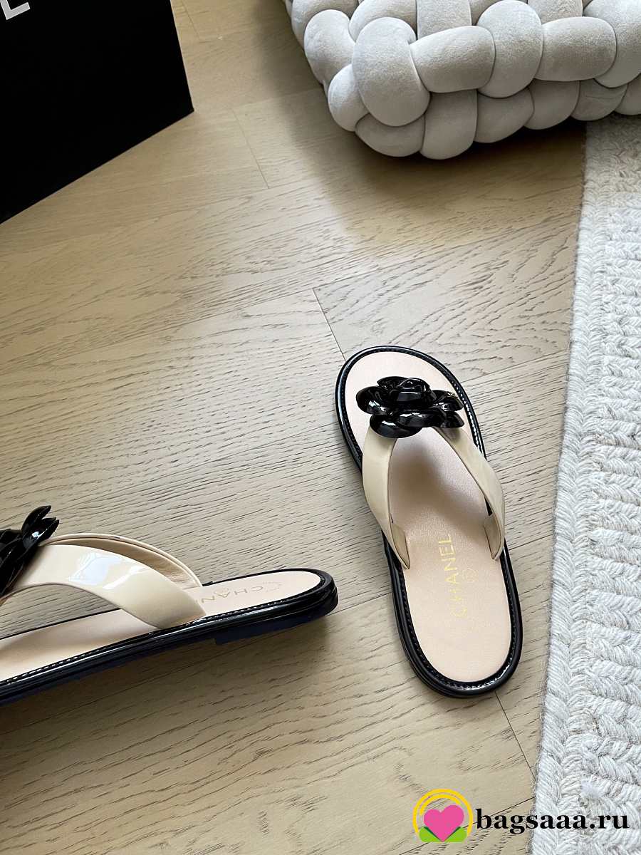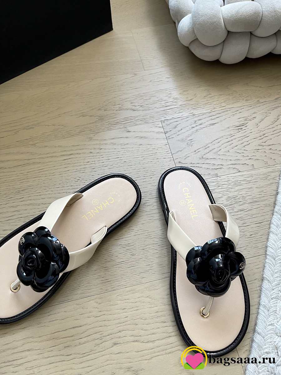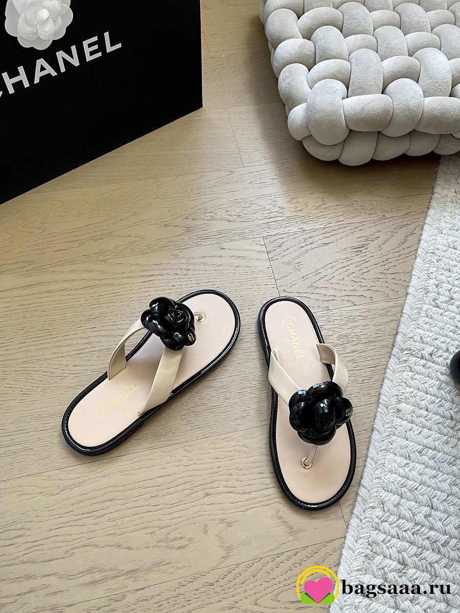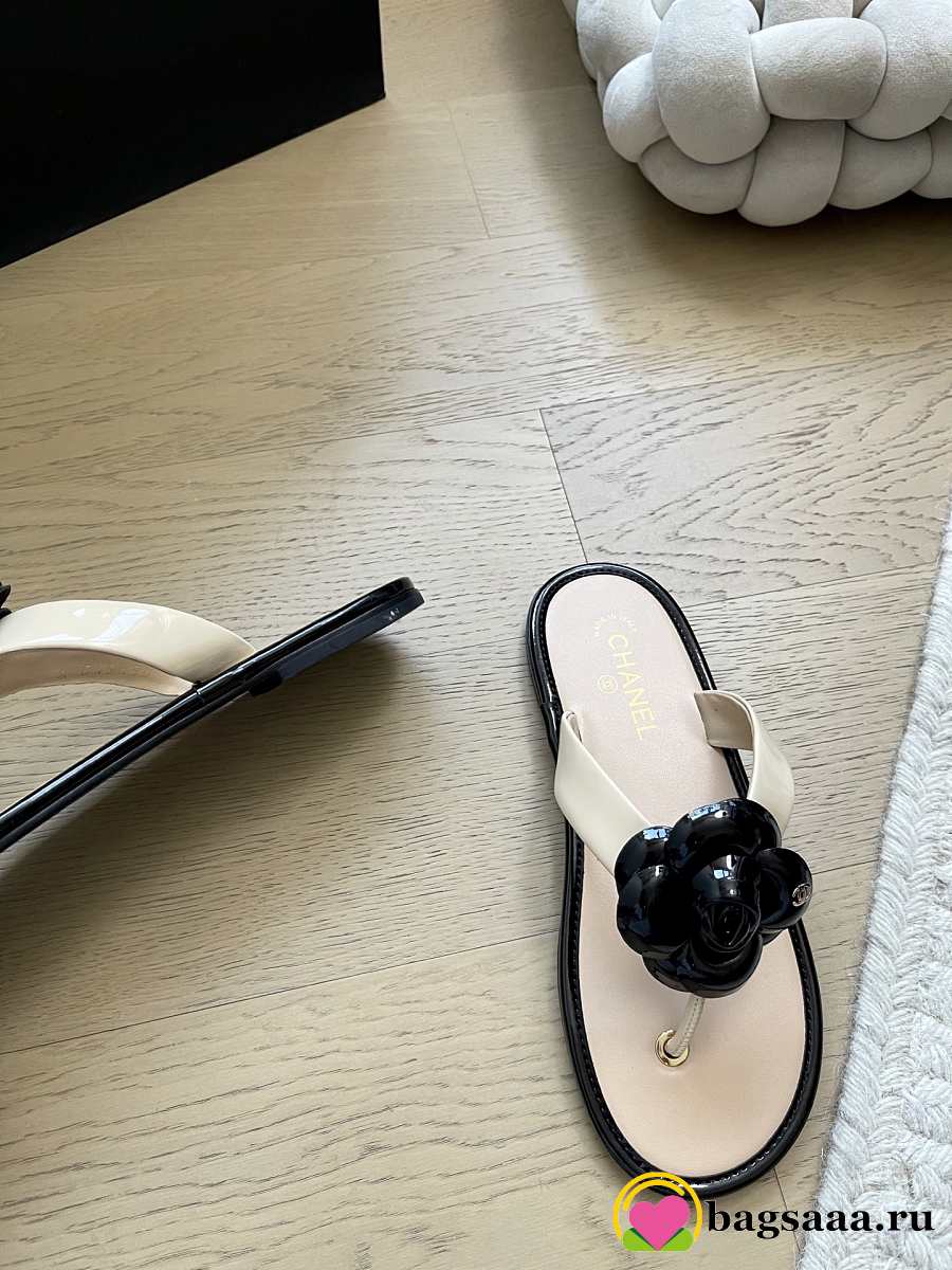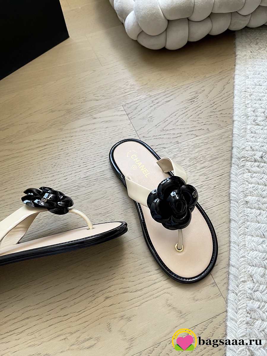 Bagsaaa Chanel black and beige jelly Camellia thong flat sandals