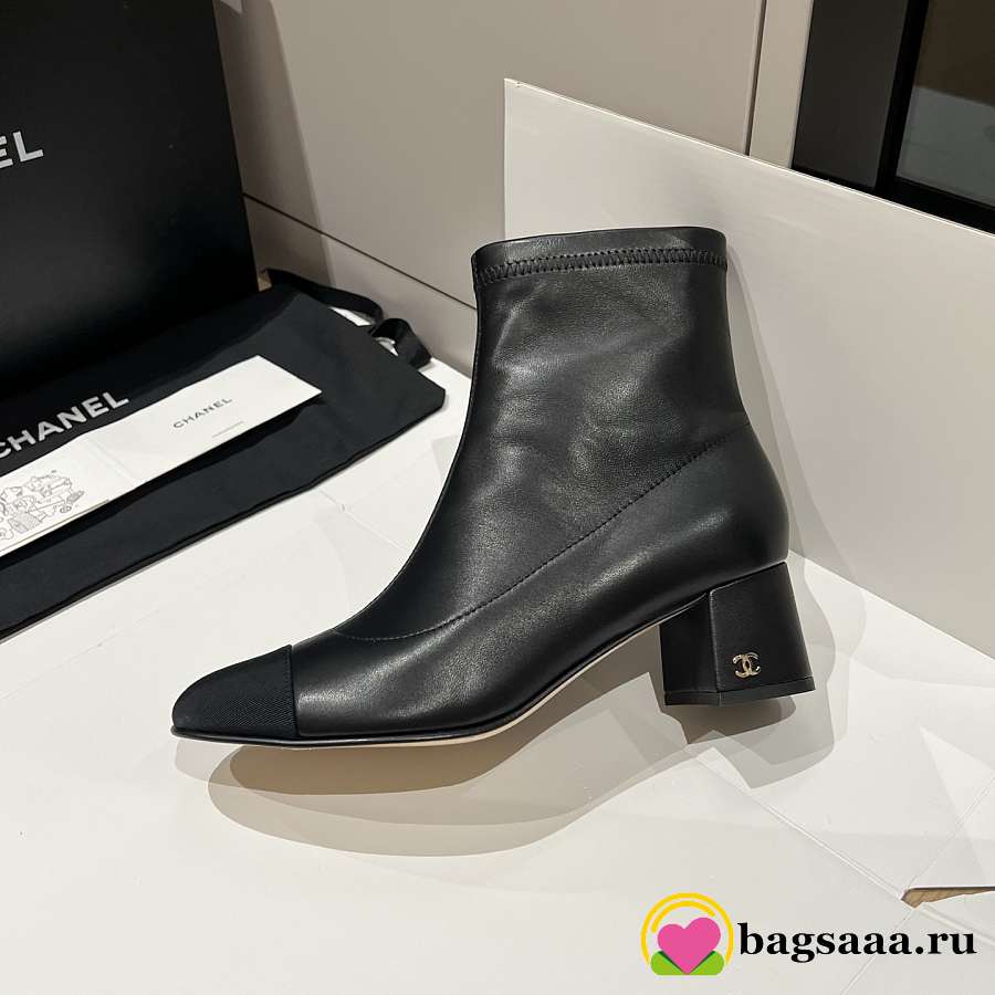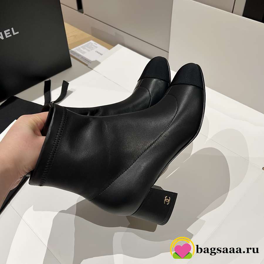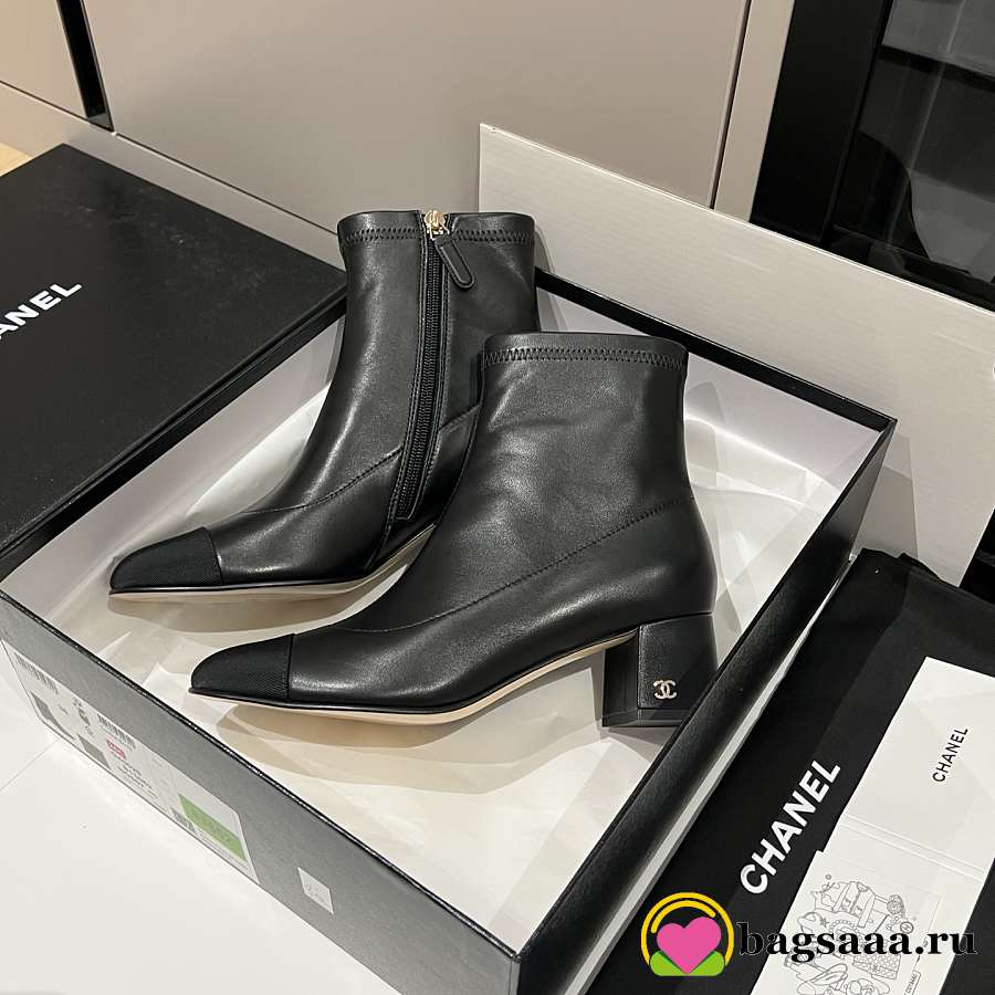 Bagsaaa Chanel black leather cap-toe ankle boots with zipper