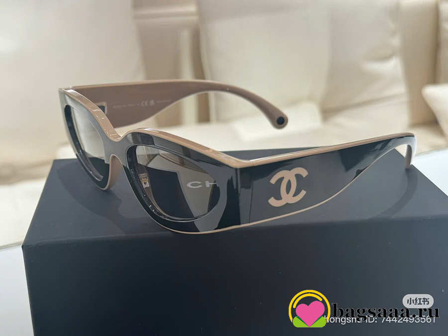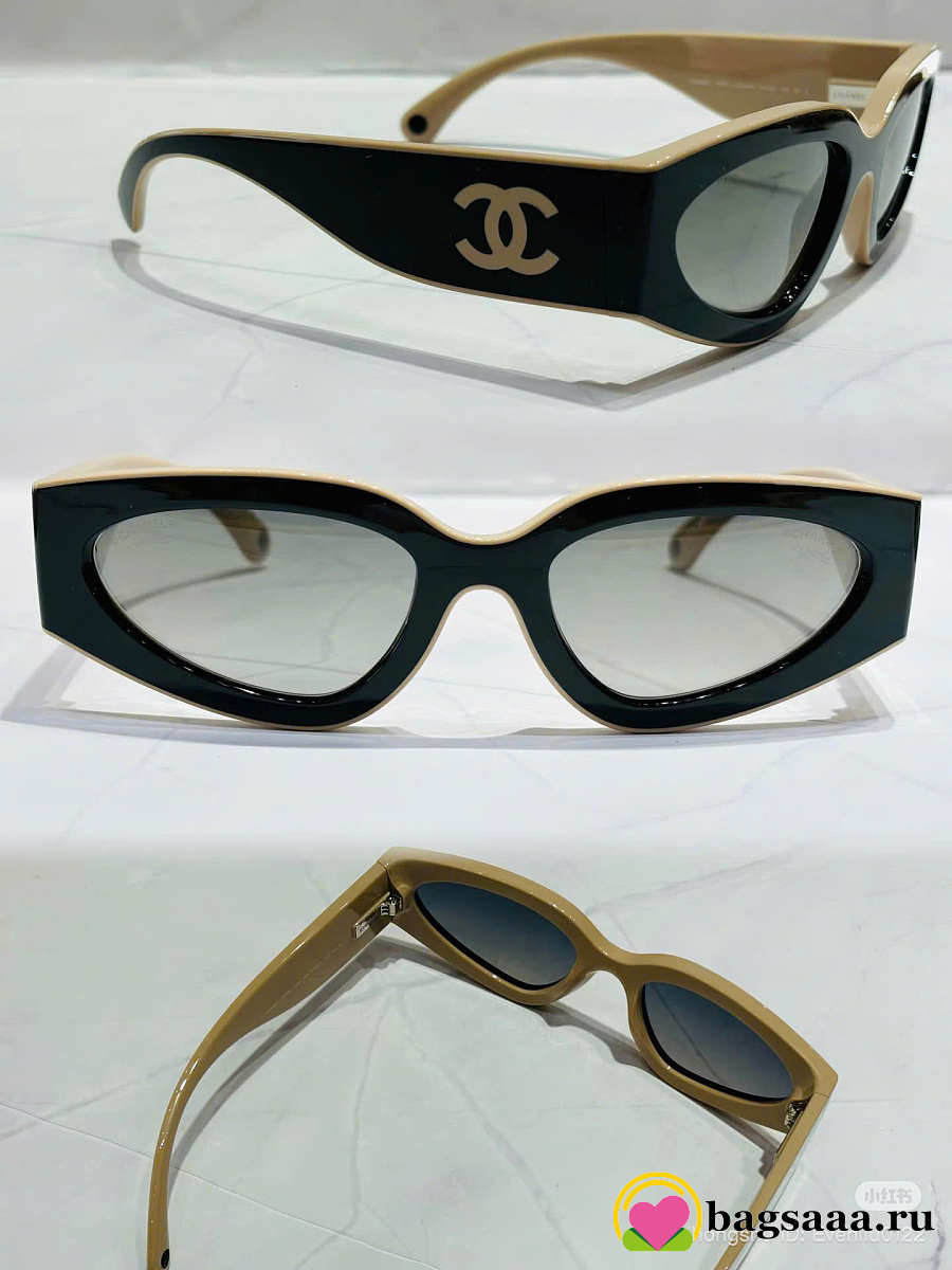 Bagsaaa Chanel Cat Eye Sunglasses Black & Beige - Lenses: Light Grey
