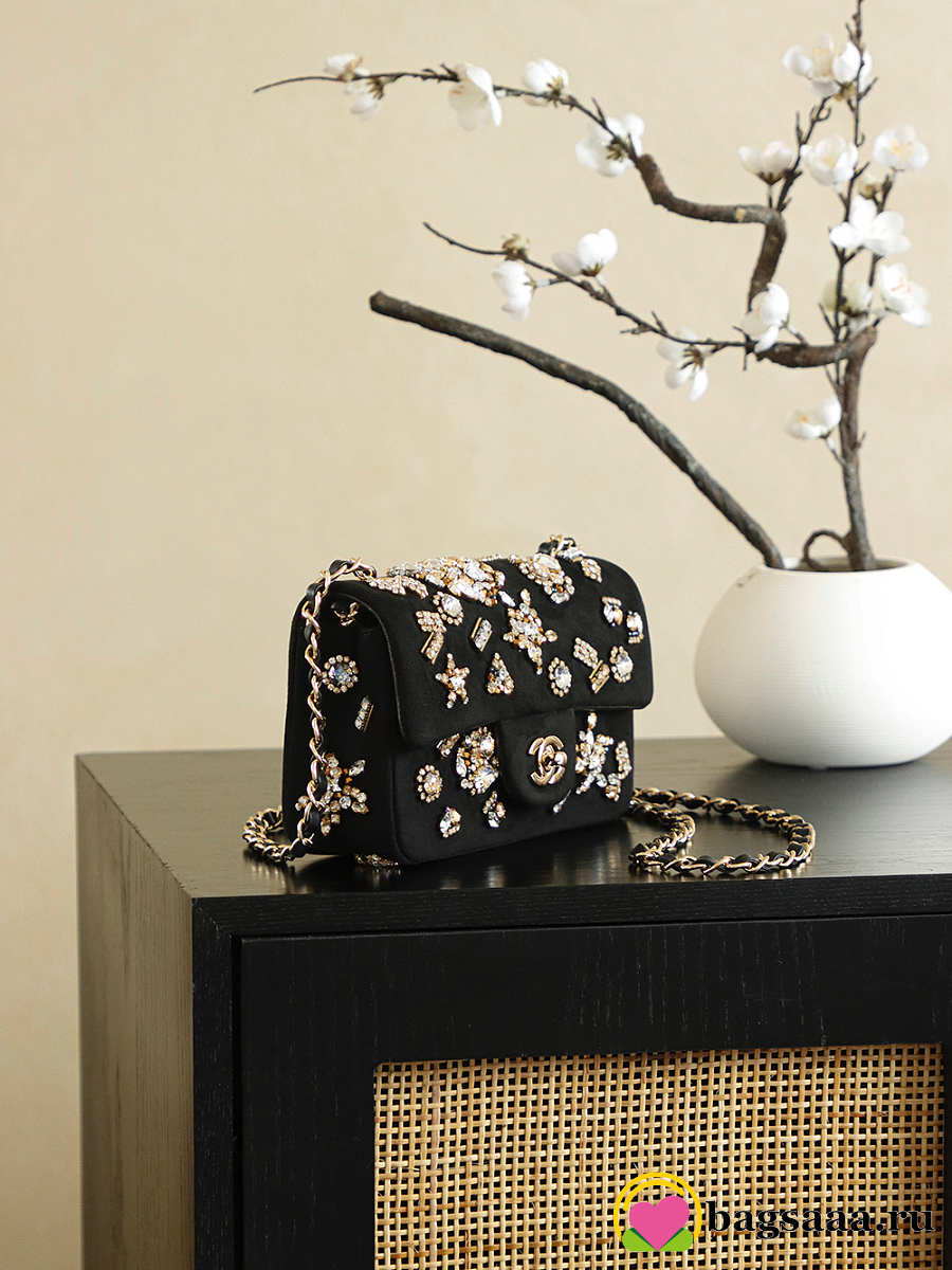 Bagsaaa Chanel Mini Classic Handbag A69900 Black, Crystal & Golden - 20cm