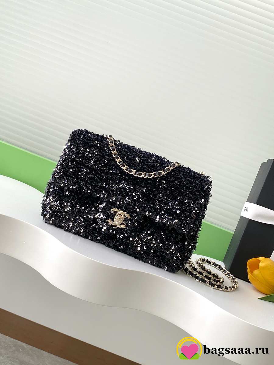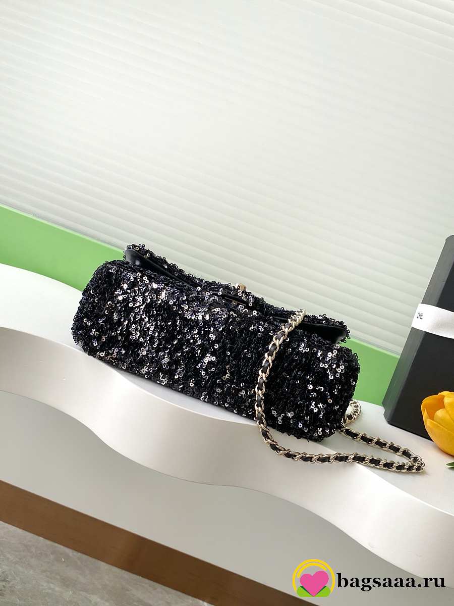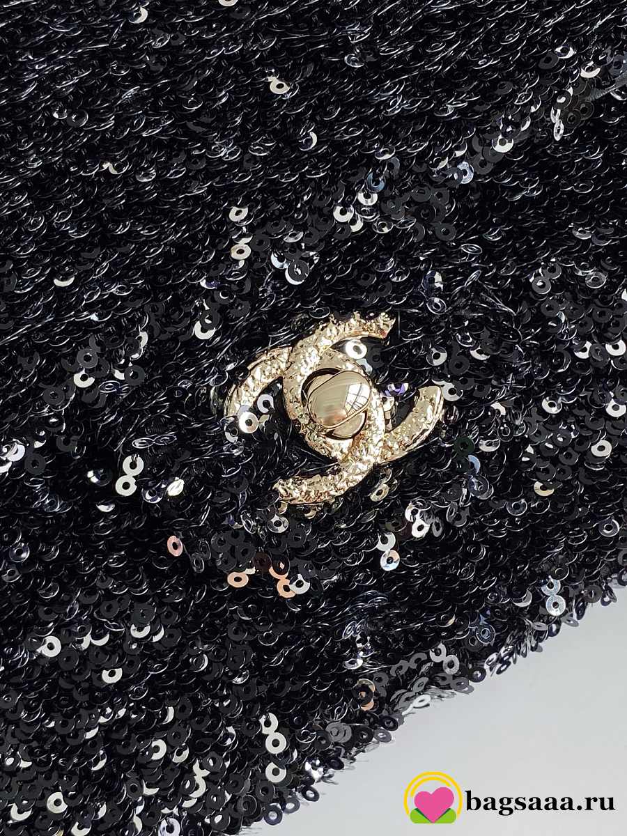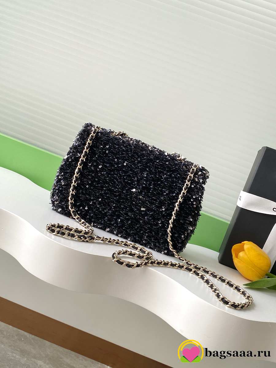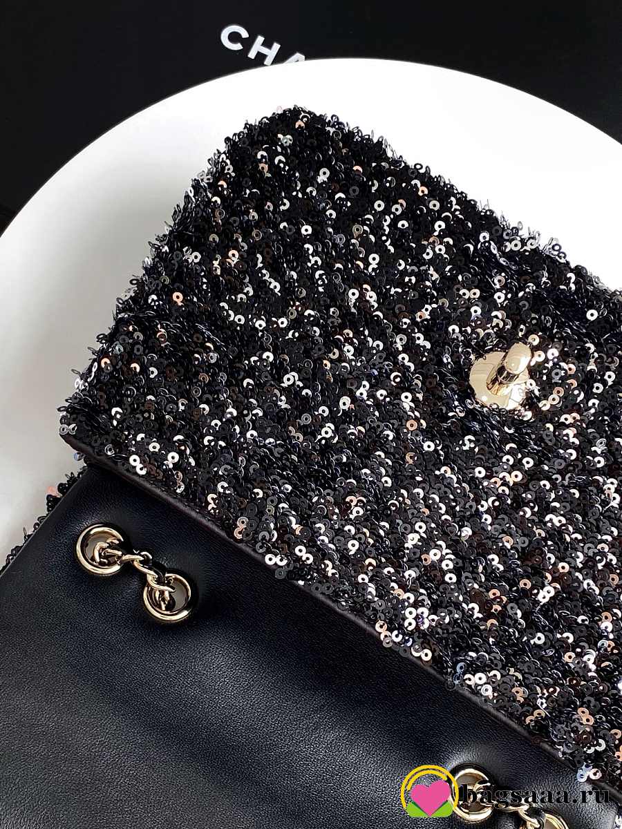 Bagsaaa Chanel small flap bag in black and white sequins with gold-tone metal - 21cm