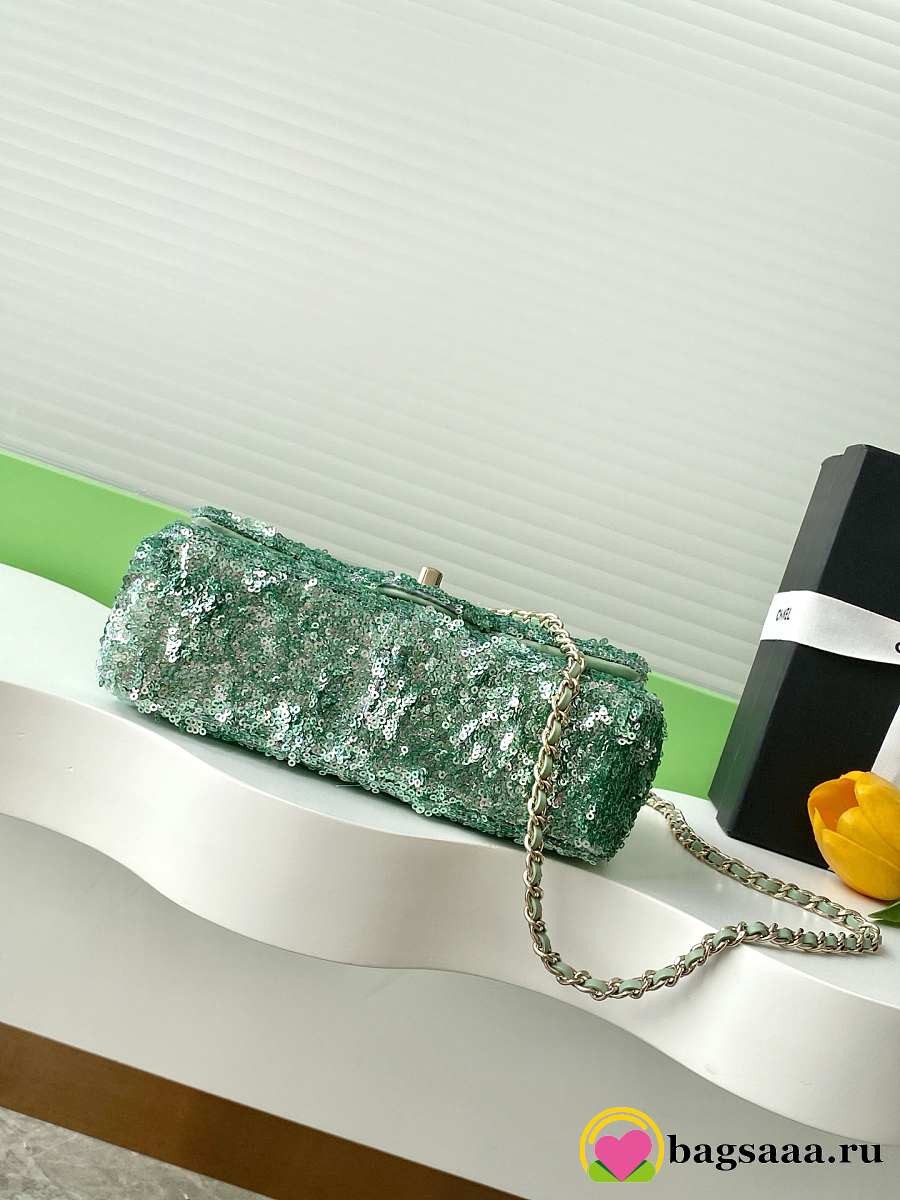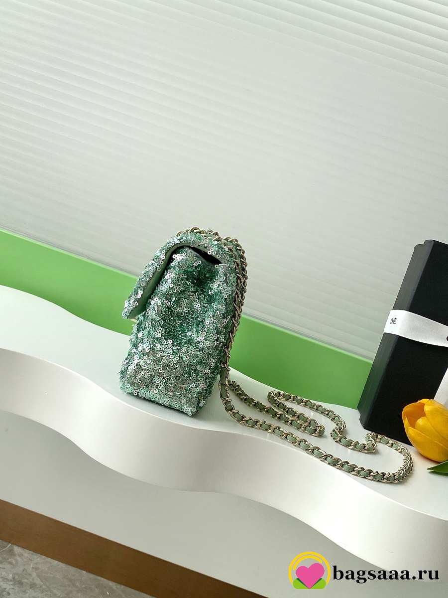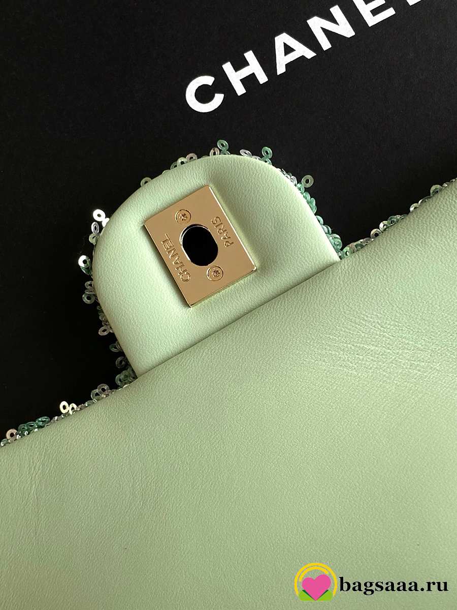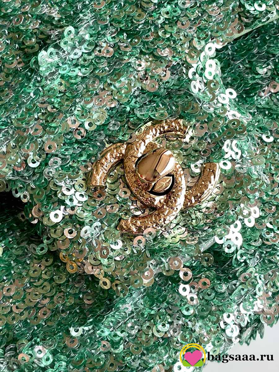 Bagsaaa Chanel small flap bag in green and white sequins with gold-tone metal - 21cm