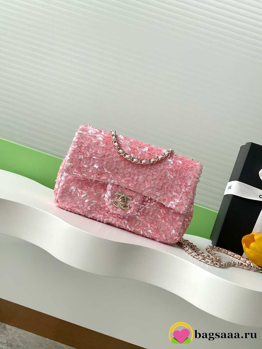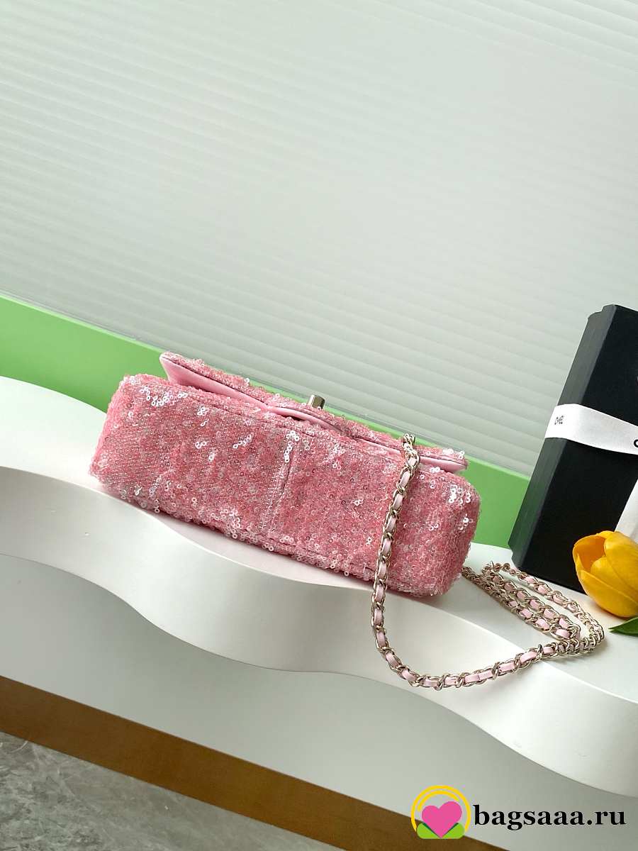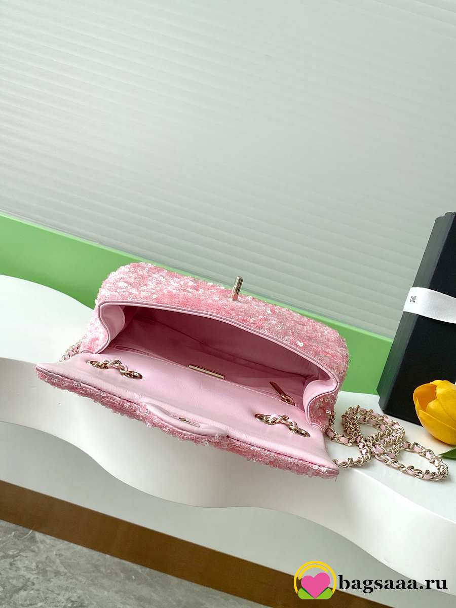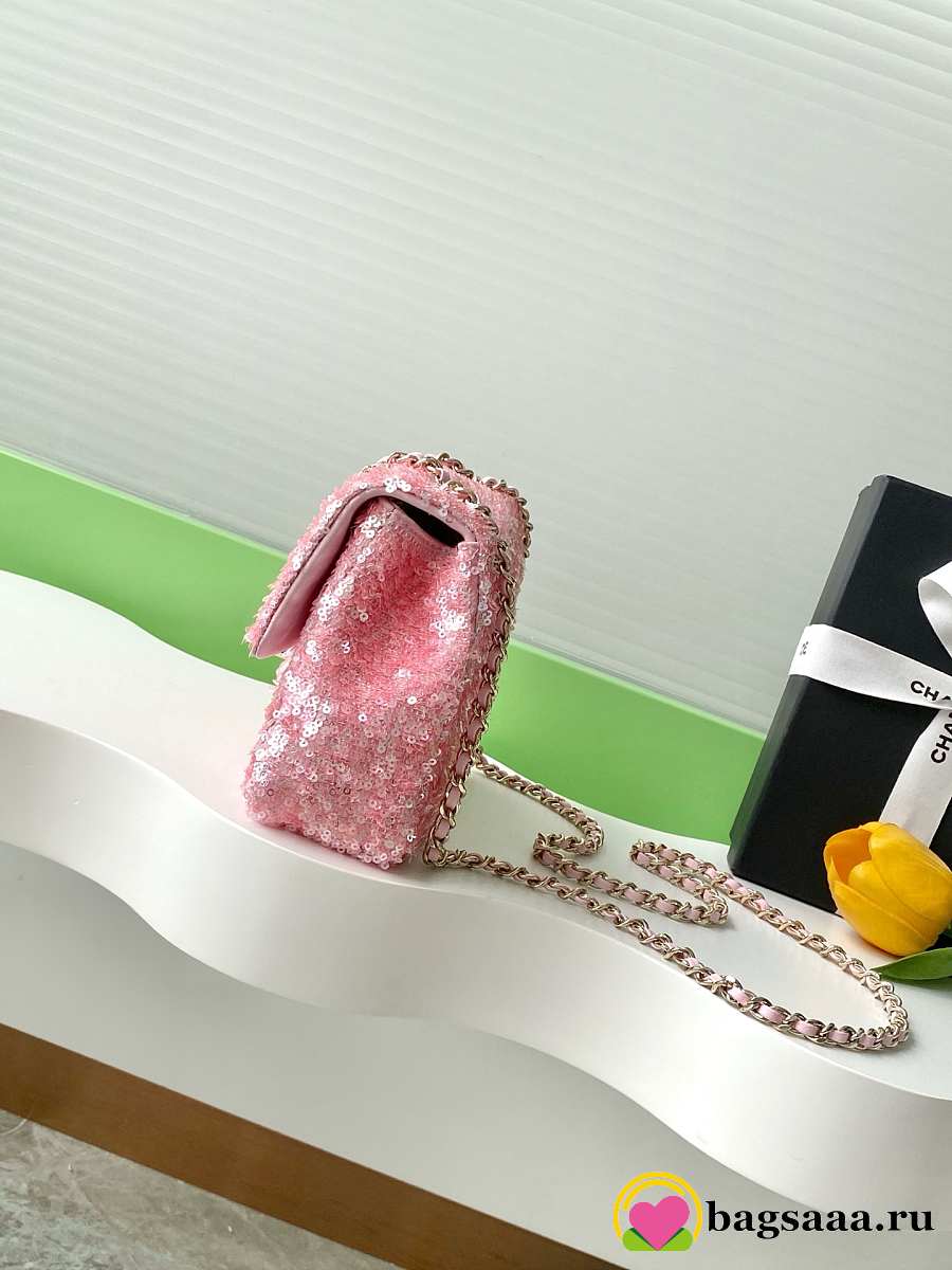 Bagsaaa Chanel small flap bag in pink and white sequins with gold-tone metal - 21cm
