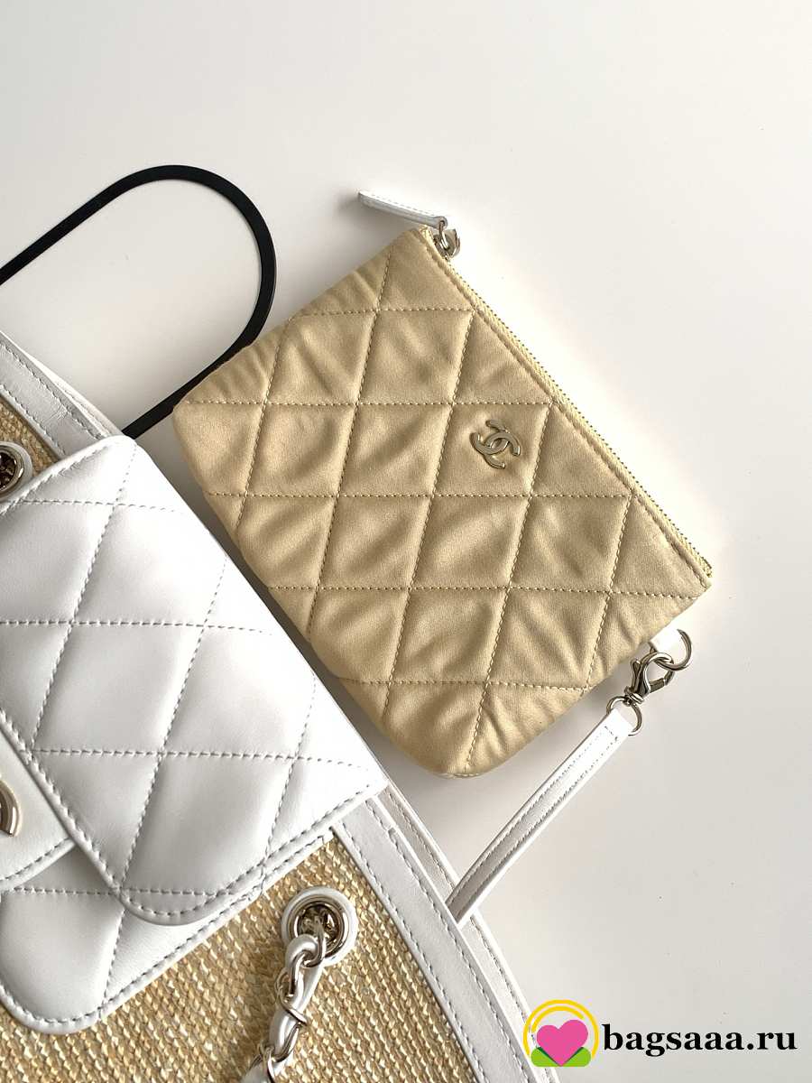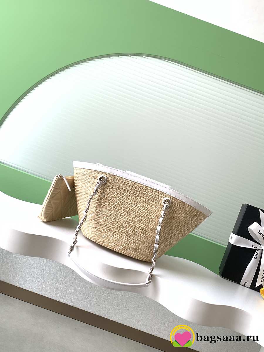 Bagsaaa Chanel Small Small Tote beige braided straw and white lambskin AS5951 - 41cm