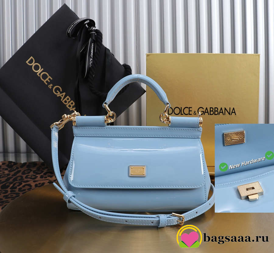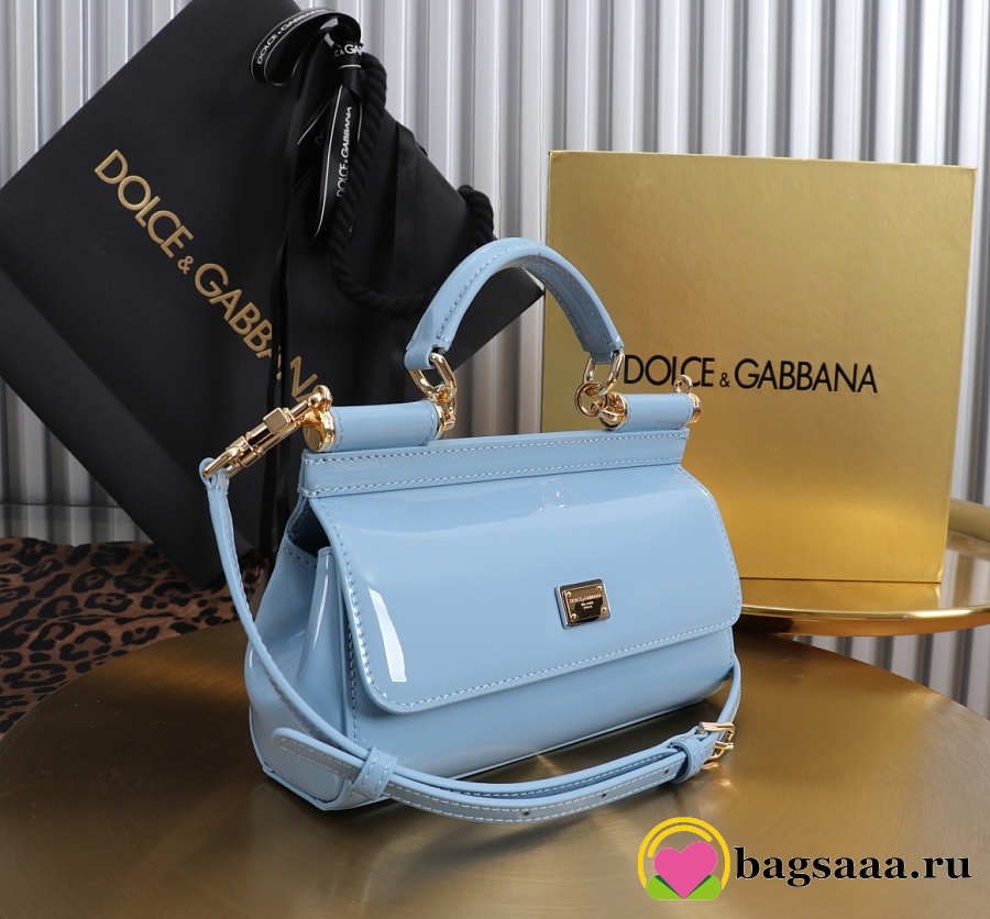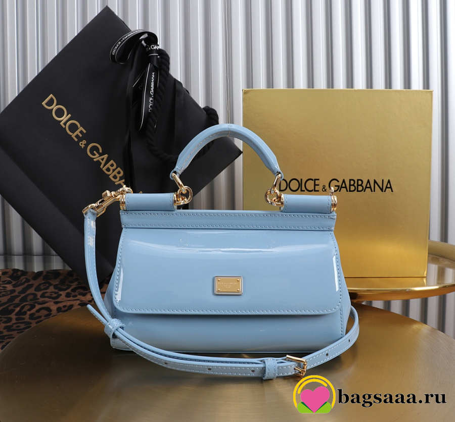 Bagsaaa Dolce & Gabbana small Sicily handbag in light blue patent-leather - 18cm