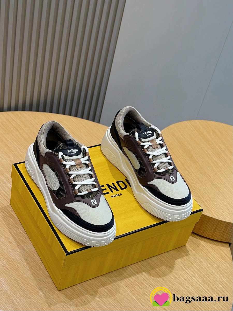 Bagsaaa Fendi Force sneakers in brown and white leather