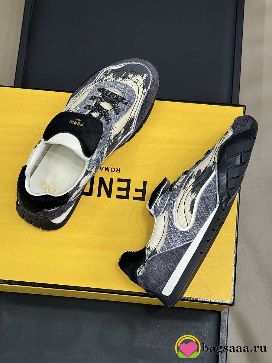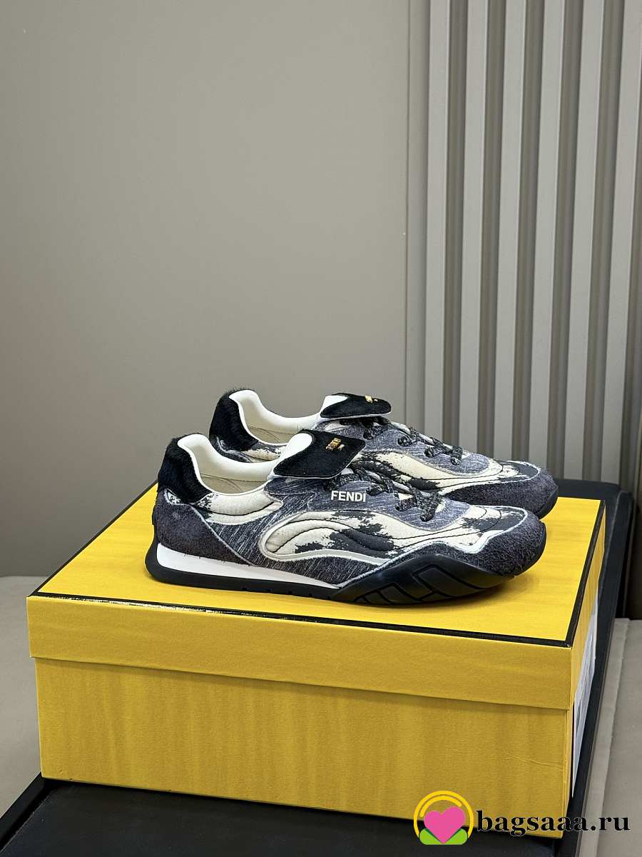 Bagsaaa Fendi Wave Pulse sneakers in grey technical fabric with black suede