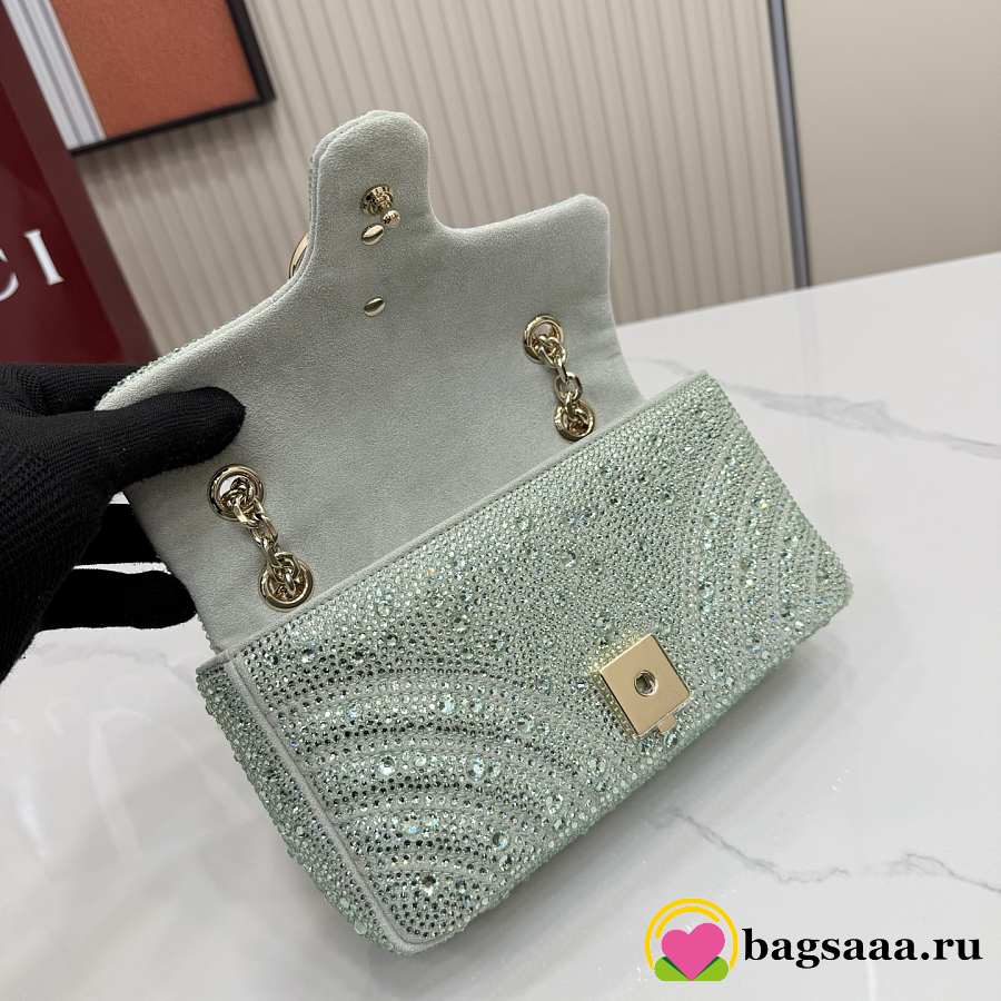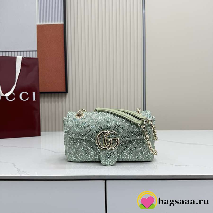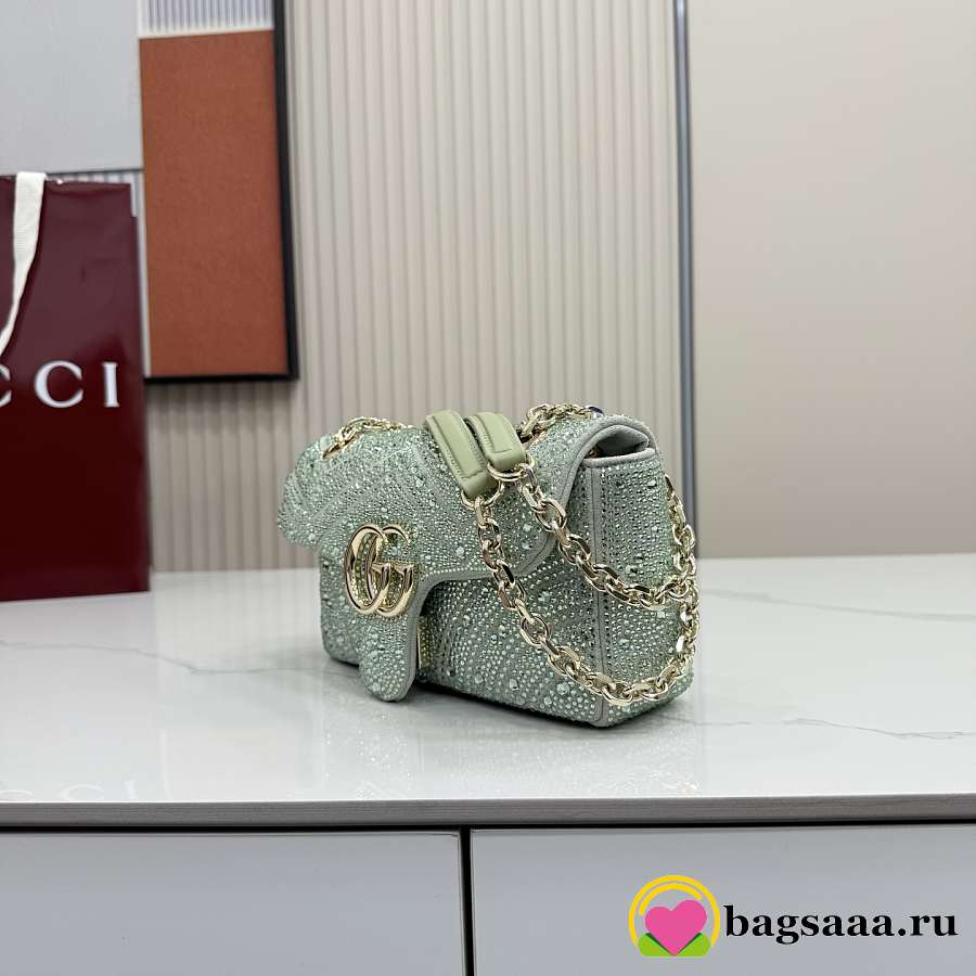 Bagsaaa Gucci GG Marmont crystals small shoulder bag 837280 green - 22cm