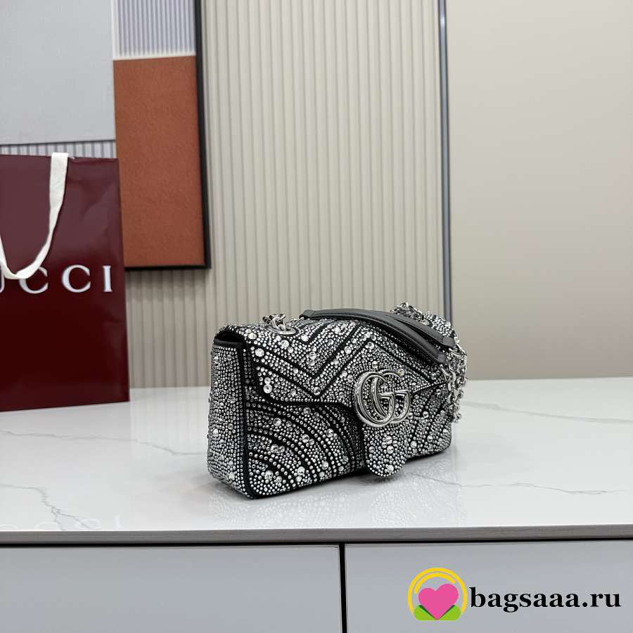 Bagsaaa Gucci GG Marmont crystals small shoulder bag 837280 grey - 22cm
