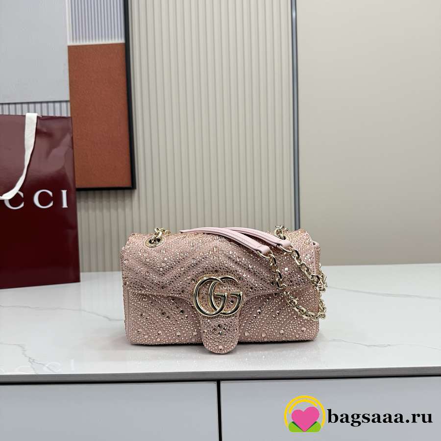 Bagsaaa Gucci GG Marmont crystals small shoulder bag 837280 pink - 22cm