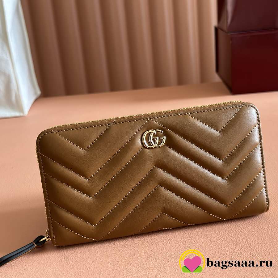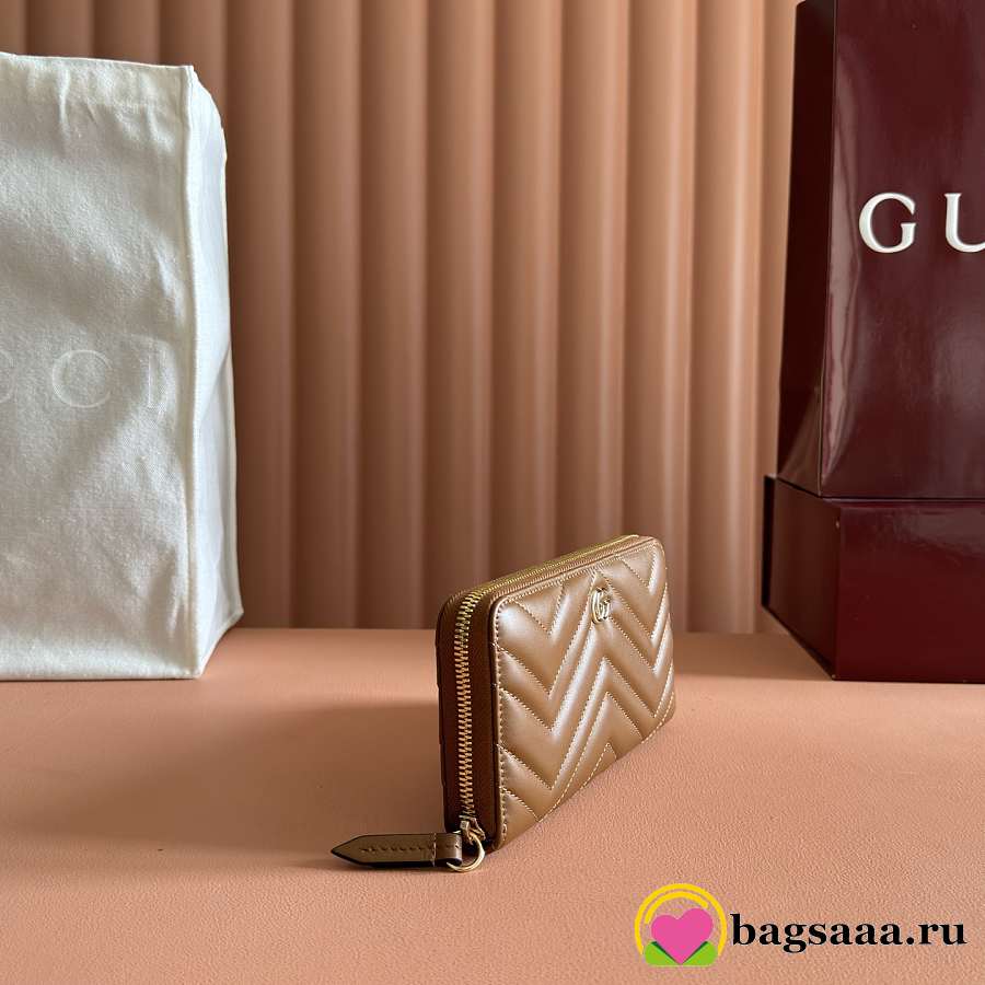 Bagsaaa Gucci GG Marmont zip around wallet 837758 brown - 19cm